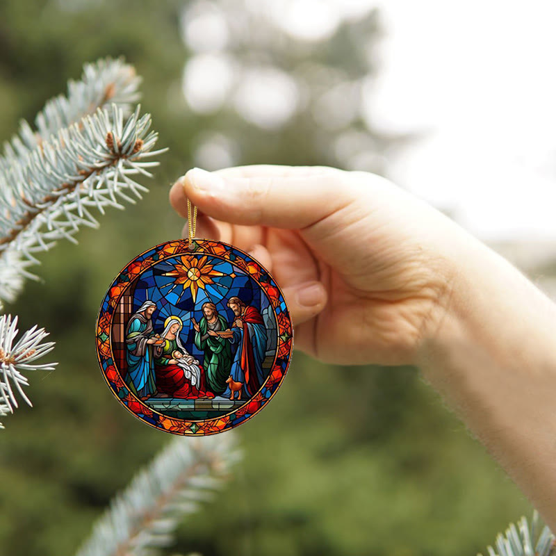 Stained Glass Styles Holy Family Christmas Colorful Ornaments D