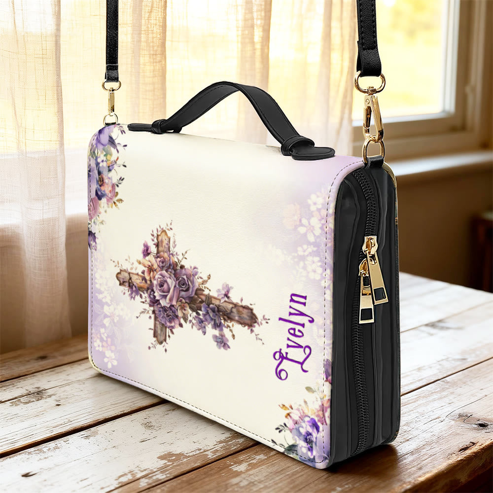 This Bible cover merges a floral-adorned cross with the foundational verse “For God so loved the world” (John 3:16) — pairing soft, elegant design with the core promise of His sacrifice to craft a devoted companion for your sacred text. -