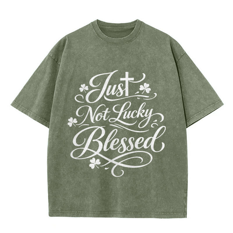 Christianartworkshop Just Not Lucky, Blessed Cross & Shamrock Unisex Washed T-Shirt