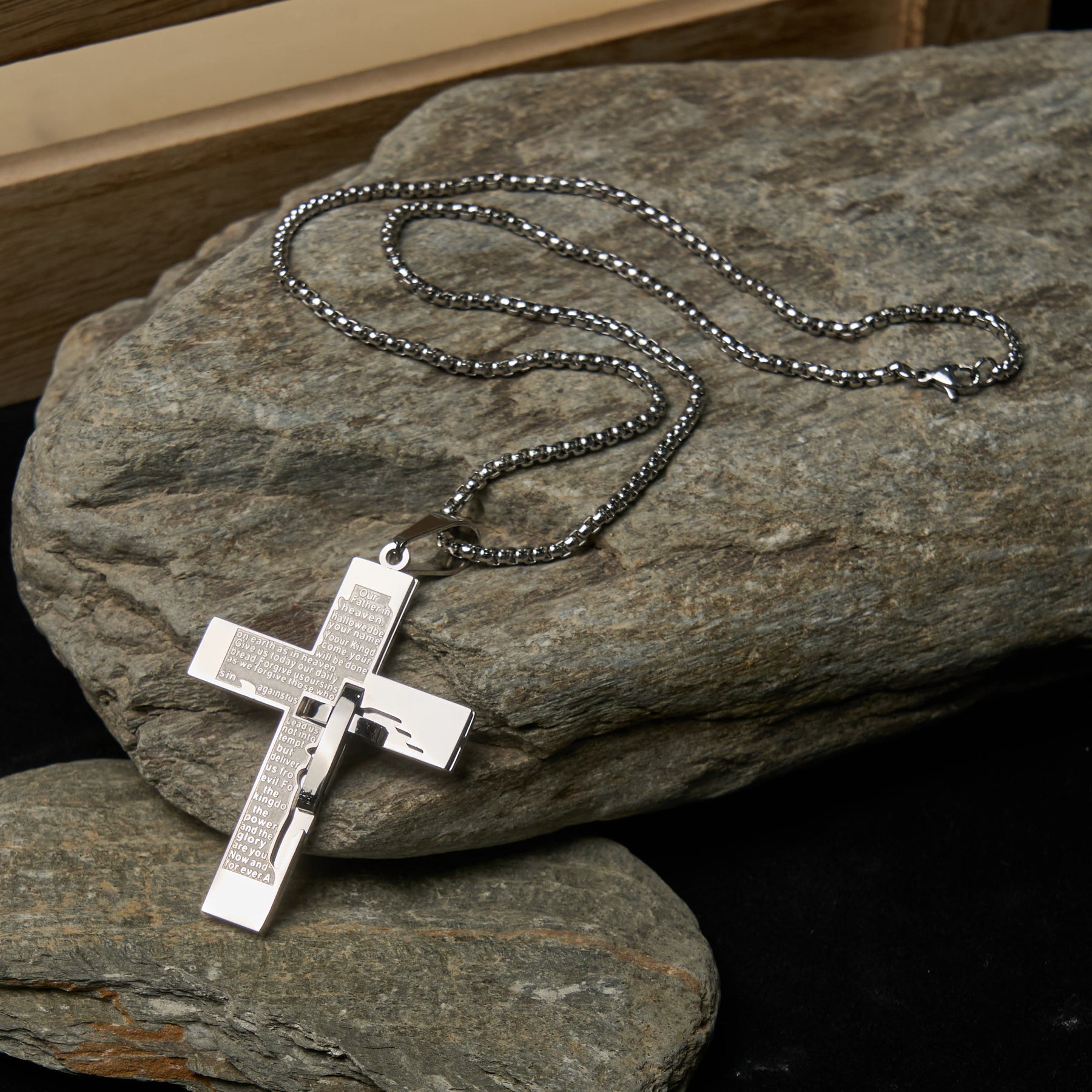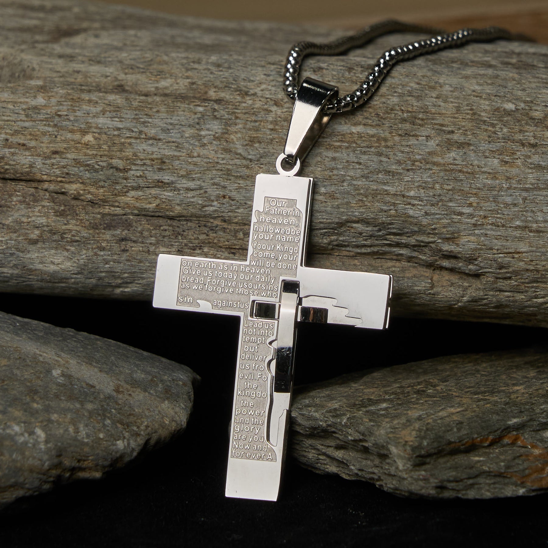 Golden and silver - toned cross pendants, crafted from stainless steel, stand as a vivid testament to faith and reverence. Their polished metallic sheen, the scripture - engraved details, and the structured crucifix design reflect a blend of divine wisdom (echoing prayers like the Lord’s Prayer) and the enduring strength of spiritual devotion, made to be a lasting symbol of faith - centered identity. -