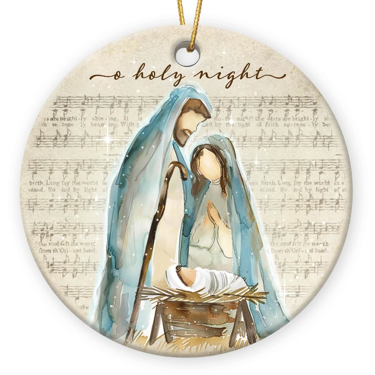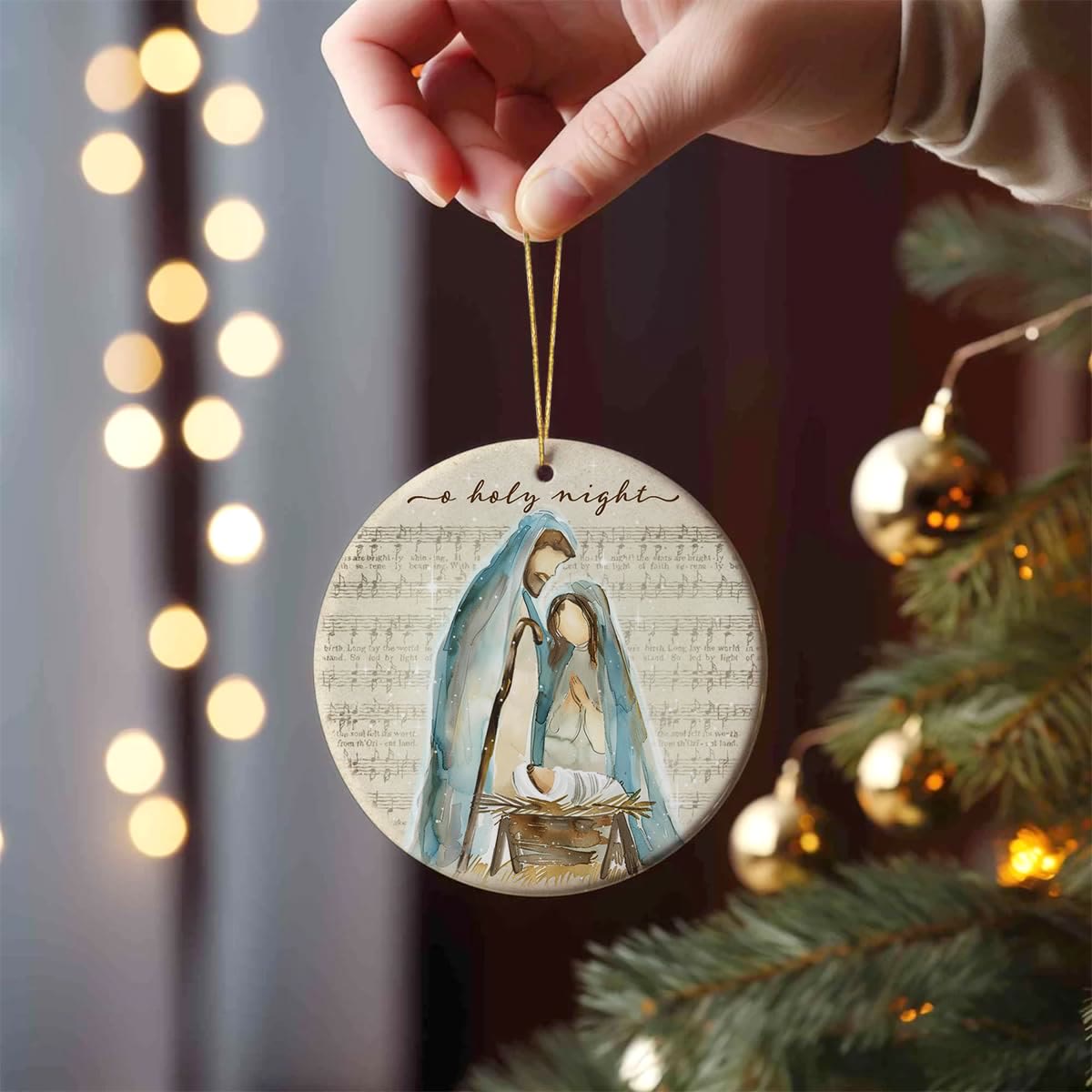 Christianartworkshop O Holy Night Music Sheet & Watercolor Nativity Hanging Ornaments