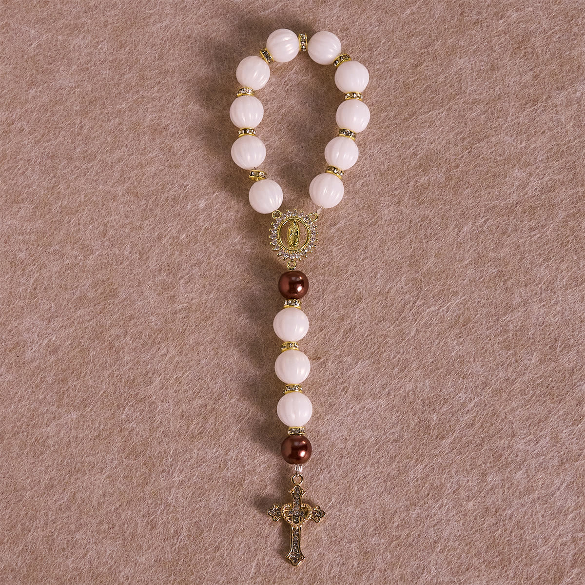 Each lustrous bead reflects grace, while the cross and Marian accents symbolize devotion and heavenly guidance. Together, they form a prayer path that nurtures the soul, reminding believers each bead is a step toward divine union. -