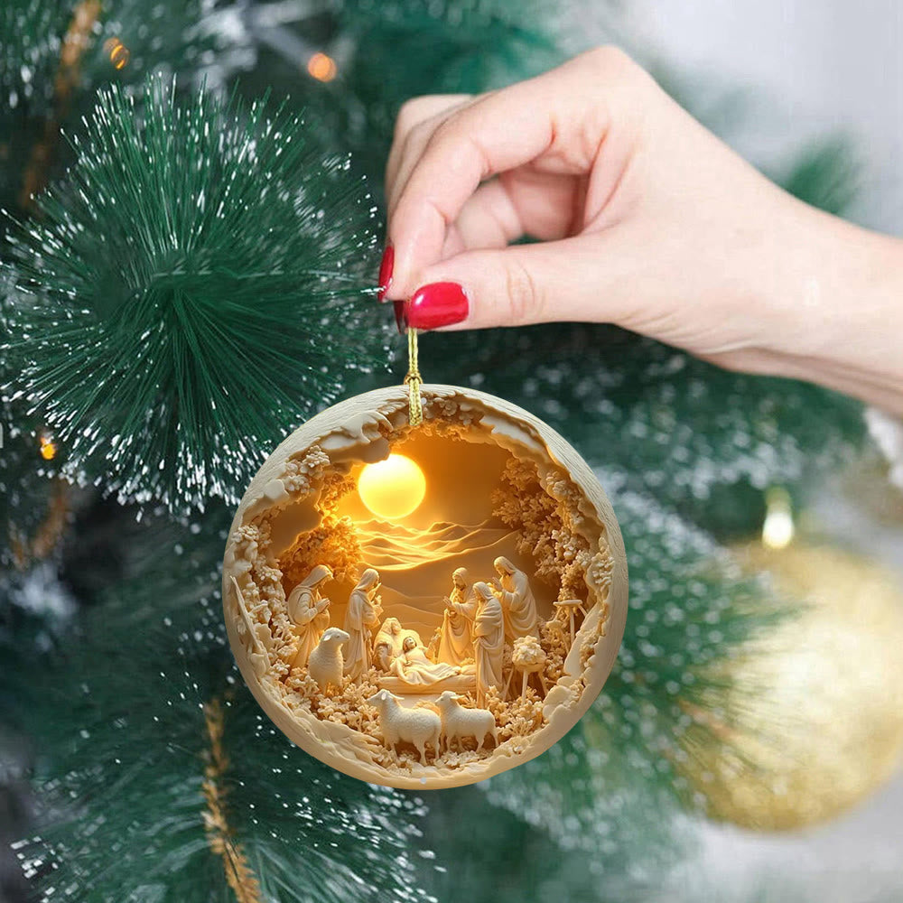 • Glowing Cream - Toned Nativity Hanging Ornament: Embrace Christmas’ sacred warmth with our Glowing Cream - Toned Nativity Hanging Ornament. Crafted for Christians who treasure the nativity story, this exquisitely detailed piece brings divine, cozy charm to your Christmas tree.