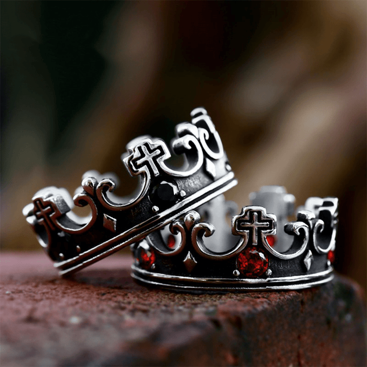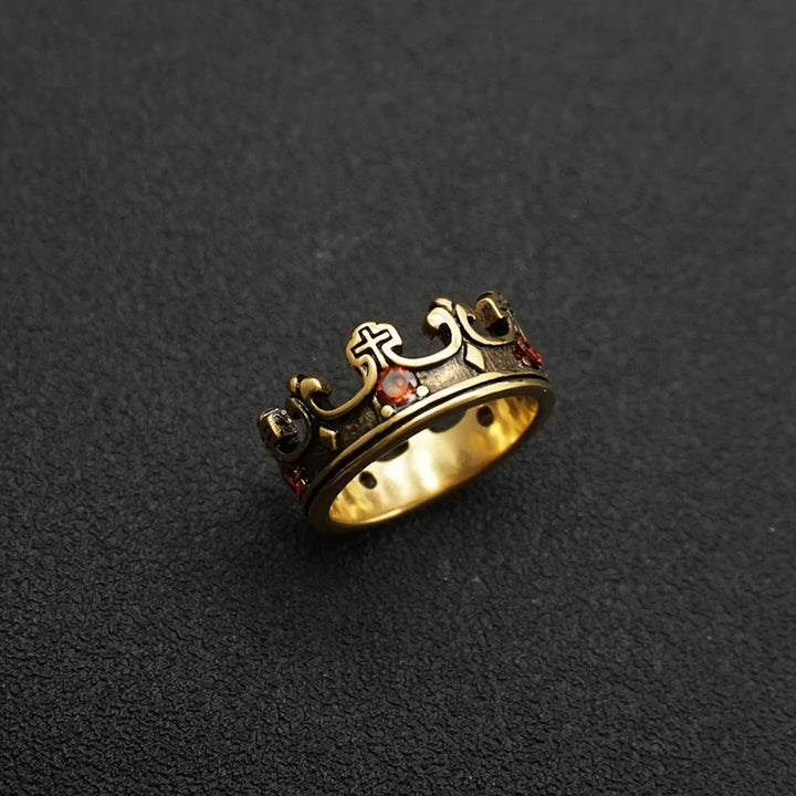 This ring is crafted in the shape of a crown, adorned with crosses and vibrant red stones. In the Bible, crowns are often symbols of victory, honor, and authority. As stated in James 1:12, "Blessed is the one who perseveres under trial because, having stood the test, that person will receive the crown of life that the Lord has promised to those who love him."
