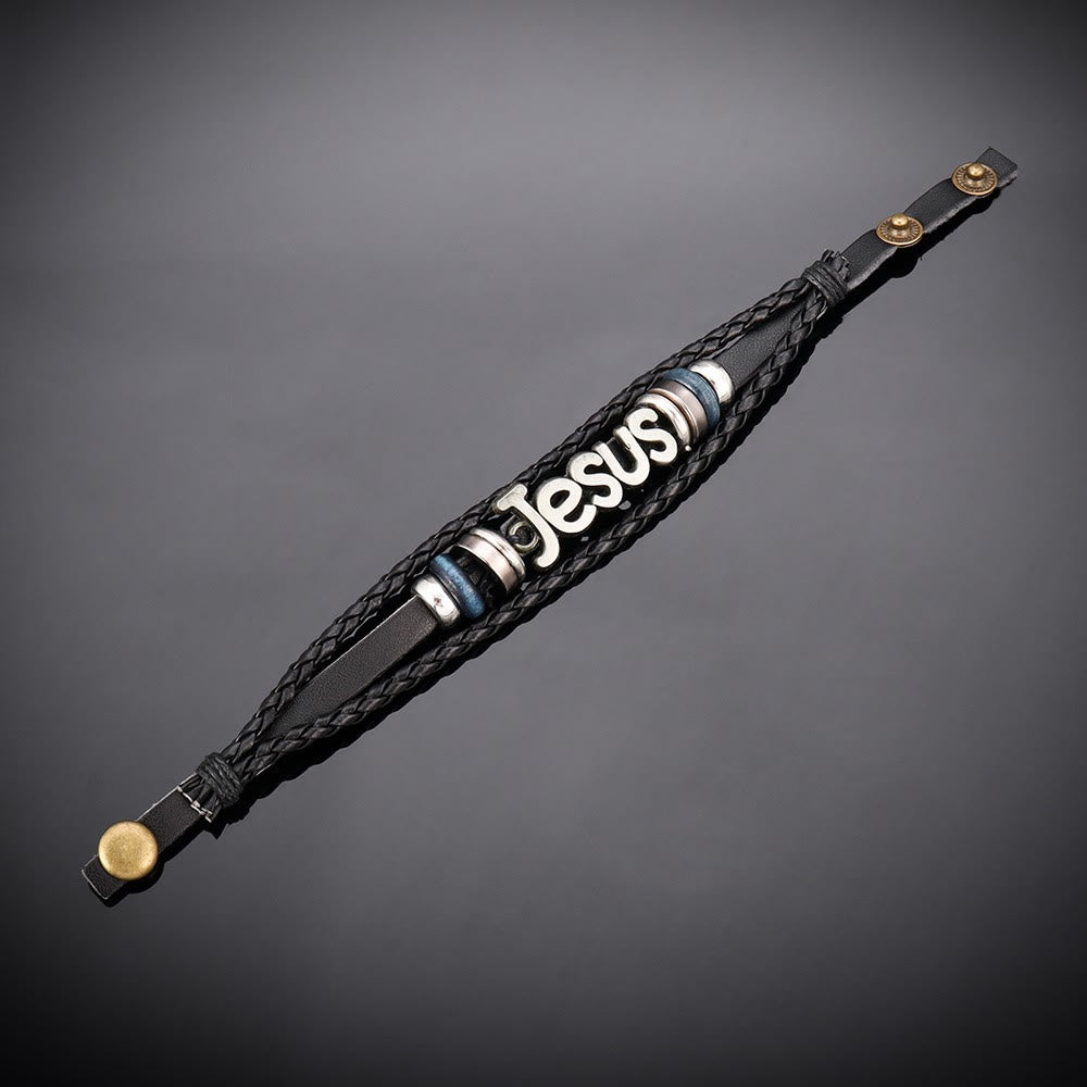 • Embrace Faith with the "Jesus" Braided Leather Bracelet