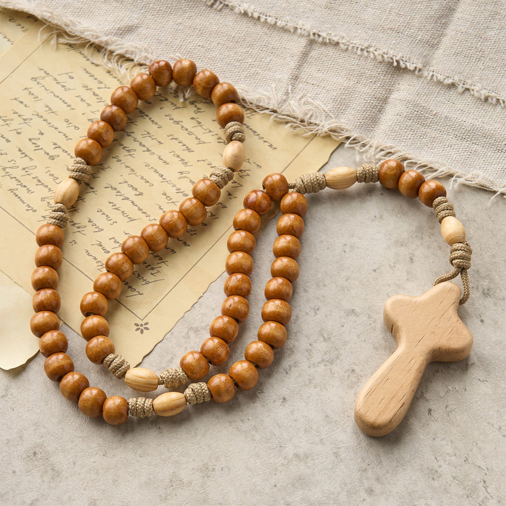 The Minimalist Olive Wood Rosary, featuring a Hand - held Prayer Comfort Cross, blends understated design with deep faith. Its clean lines and natural wood essence embody simple, profound devotion.