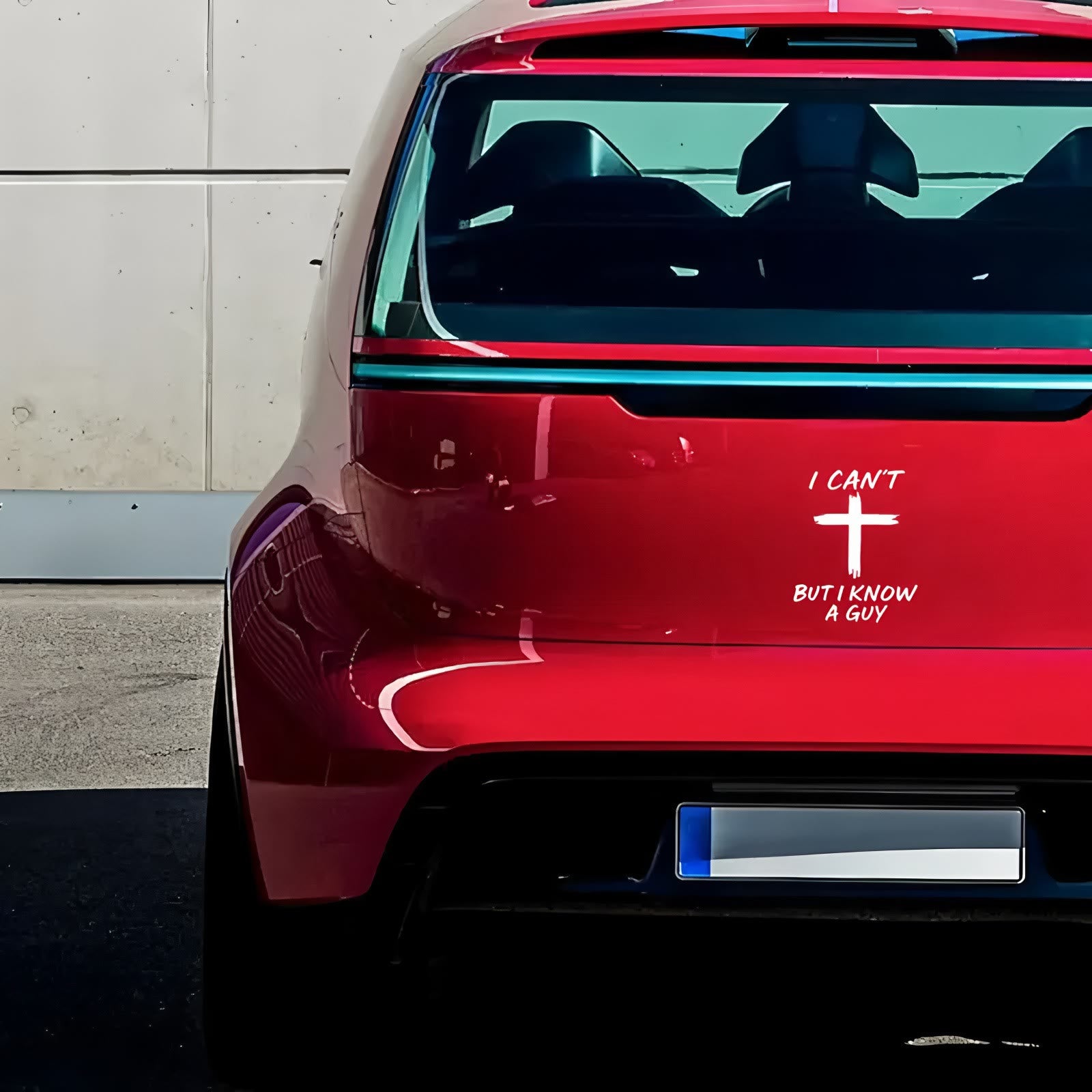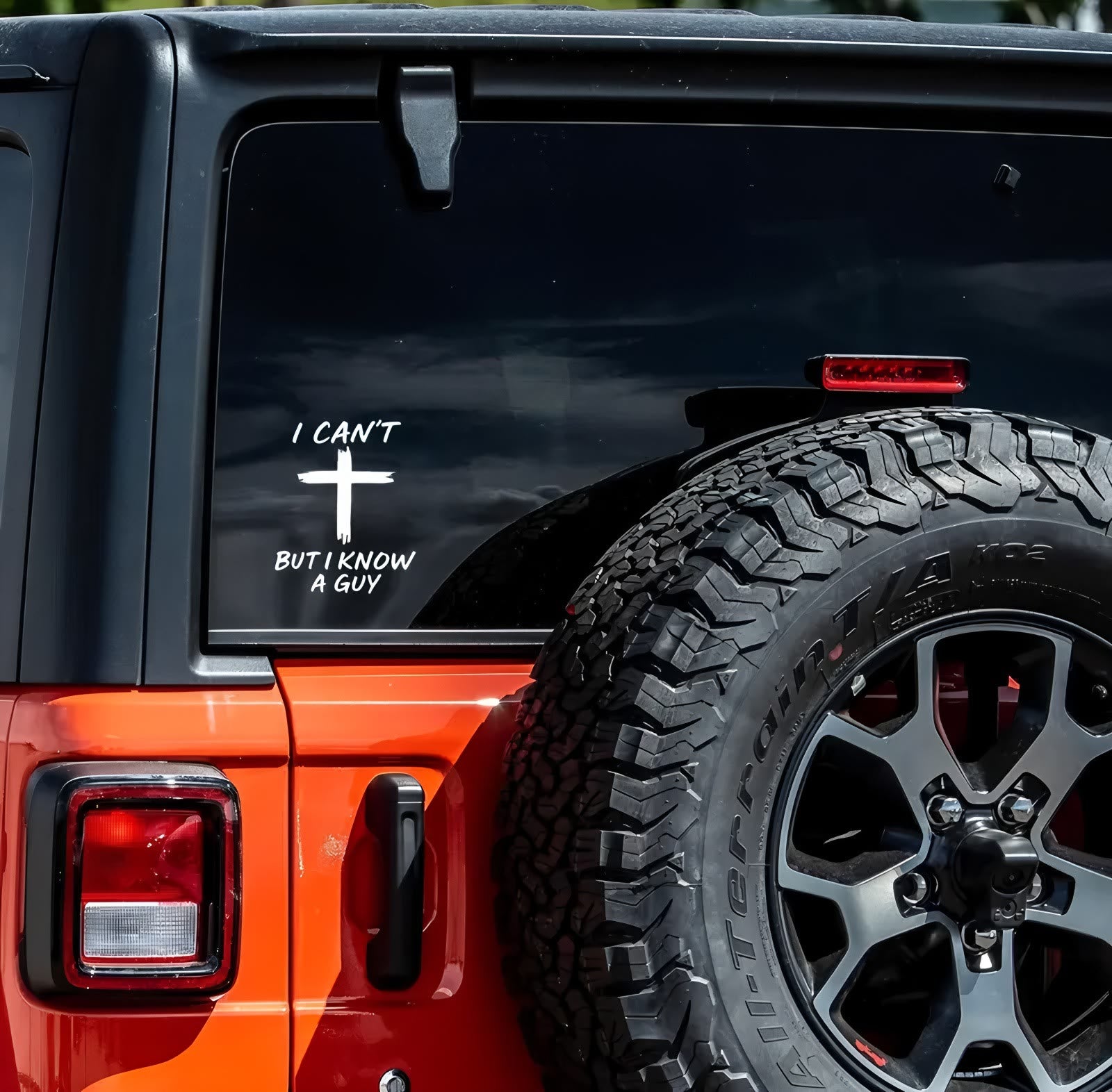This minimalist decal pairs a hand-drawn cross with the cheeky confession “I CAN’T / BUT I KNOW A GUY,” turning everyday spaces into a quiet witness of trust in Jesus. It’s lighthearted yet reverent—perfect for carrying hope into commute, class, or coffee shop. -