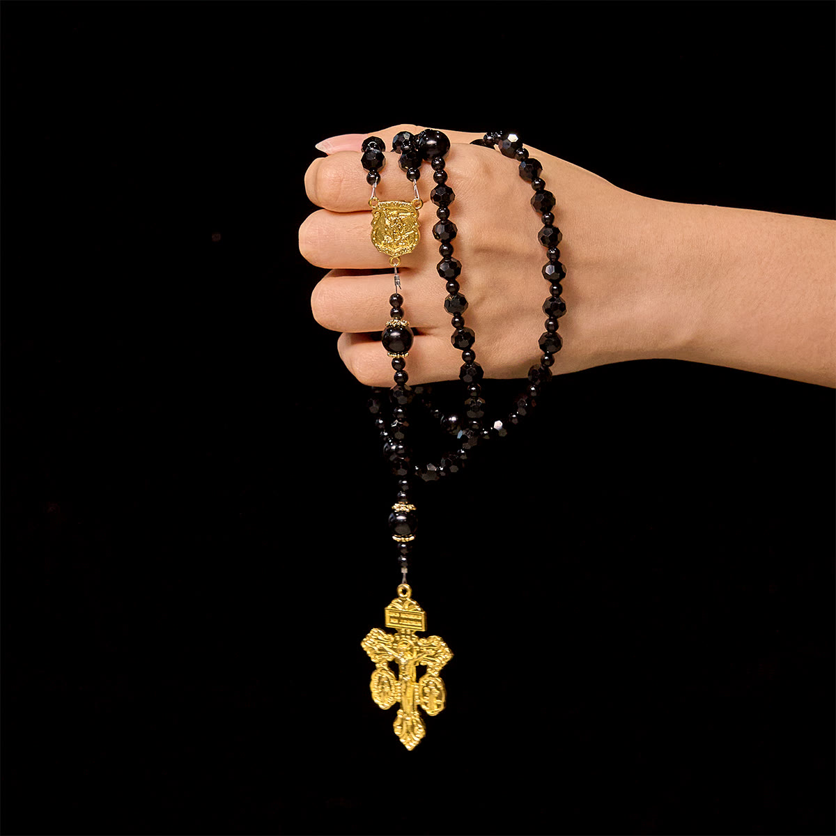 You will receive the St. Michael and Pardon Crucifix of Faceted Black Bead Handmade Rosary: protect yourself and your loved ones from negative energy.