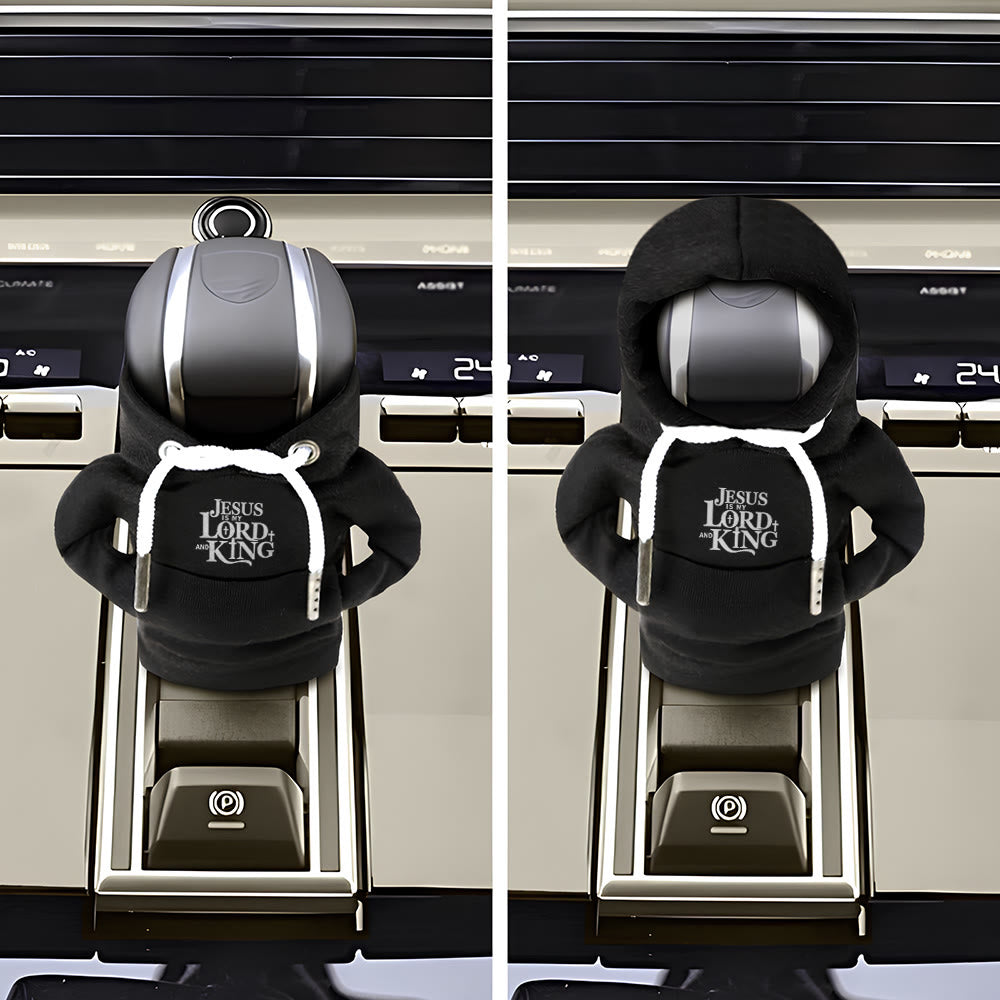 Make a bold declaration of faith with this unique hoodie-style gear shift cover, featuring the powerful proclamation "JESUS LORD AND KING" — a constant reminder of His sovereignty during every journey. -