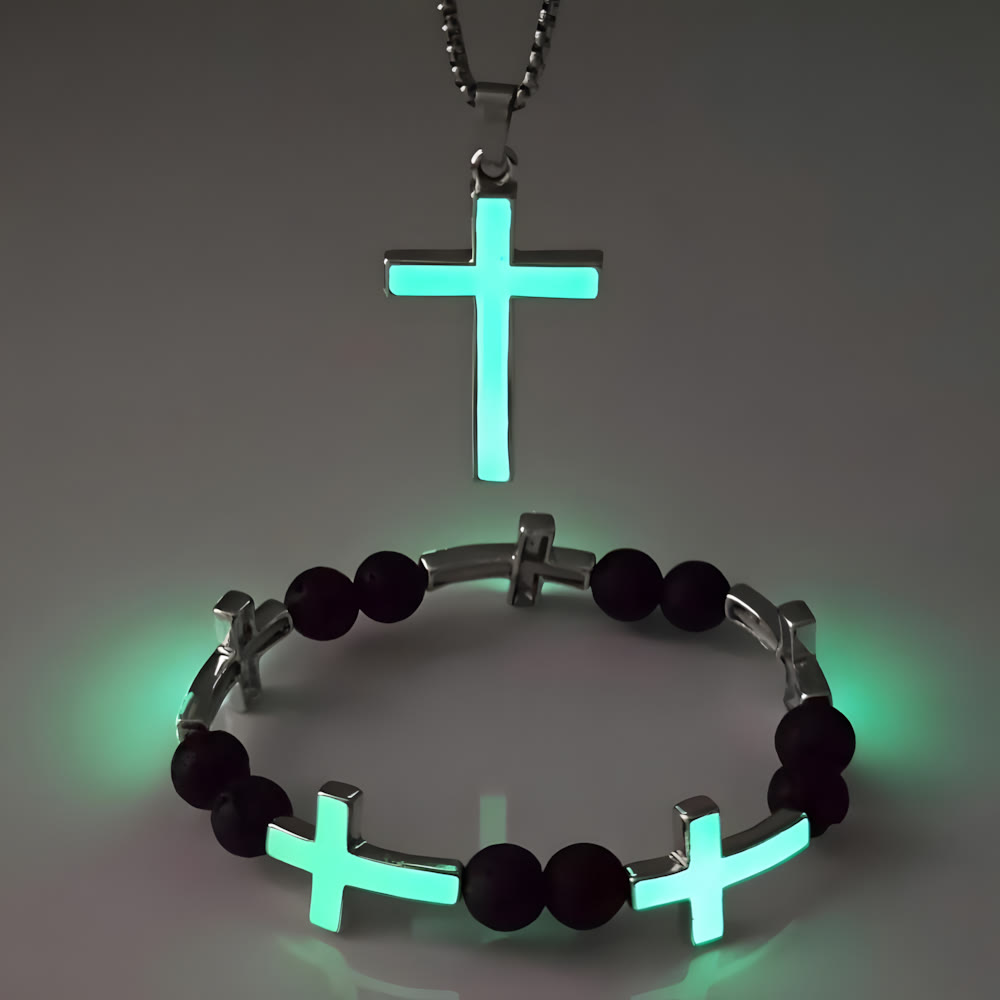 You will receive Luminous Cross Necklace & Beaded Bracelet Set: protect yourself and your loved ones from negative energy.