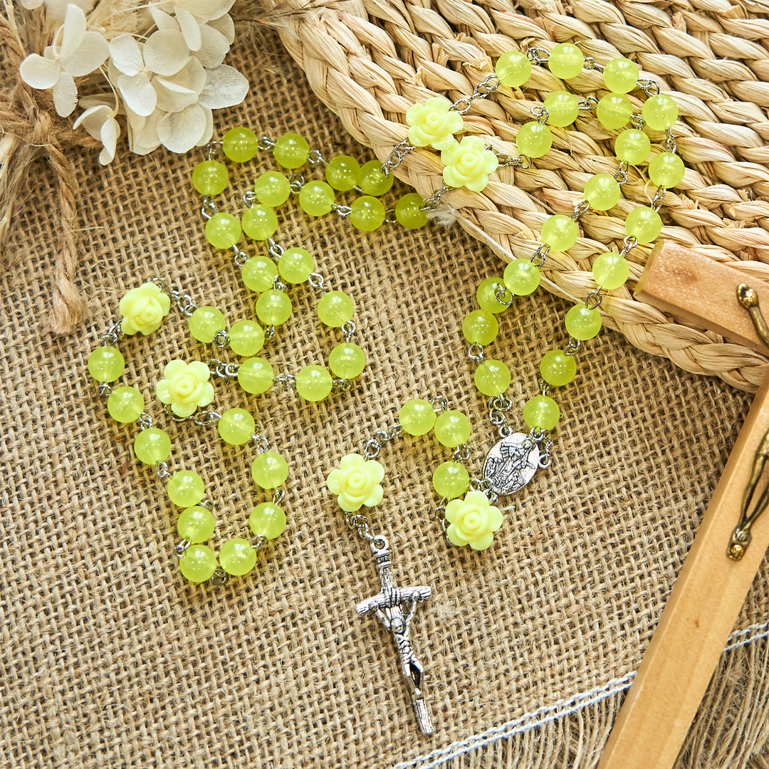8mm Luminous Glow-in-Dark Beads Flower Rosary: A Divine Light