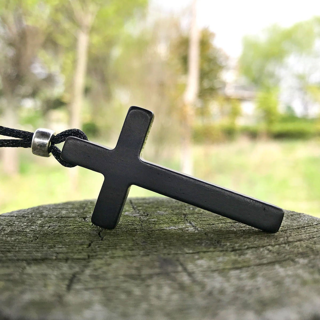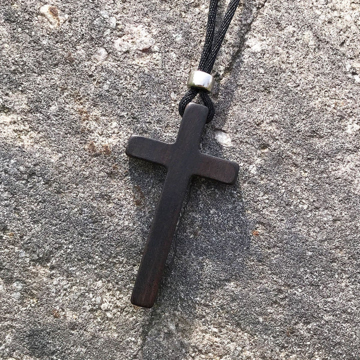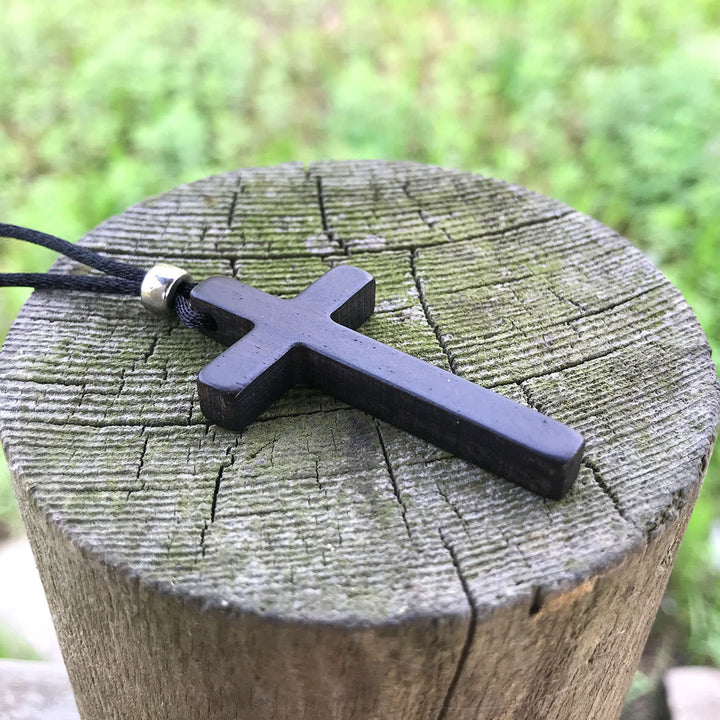 Classic Natural Ebony Cross Necklace: Pure and Enduring Faith Symbol