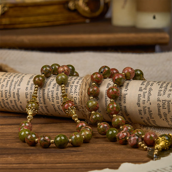 • Delight in the elegance and spiritual grace of our handcrafted rosary. Each bead is meticulously polished, blending soft shades of earthy greens and warm rose tones to enhance your prayerful experience. The rosary features intricate golden accents and a beautifully detailed crucifix, symbolizing unwavering faith and eternal hope.