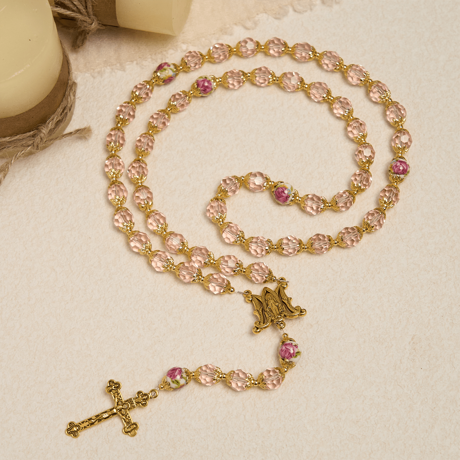 Composed of lustrous pink crystal beads, this rosary is rich in symbolism. Pink evokes themes of love, compassion, and tenderness, reflecting the loving nature of God and the Blessed Virgin Mary. The golden alloy accents, much like rays of divine light, enhance the overall allure. The rose - inspired beads among them serve as a poignant reminder of the beauty and grace found in faith, much like the roses that have long been associated with purity and devotion in Christian imagery. -