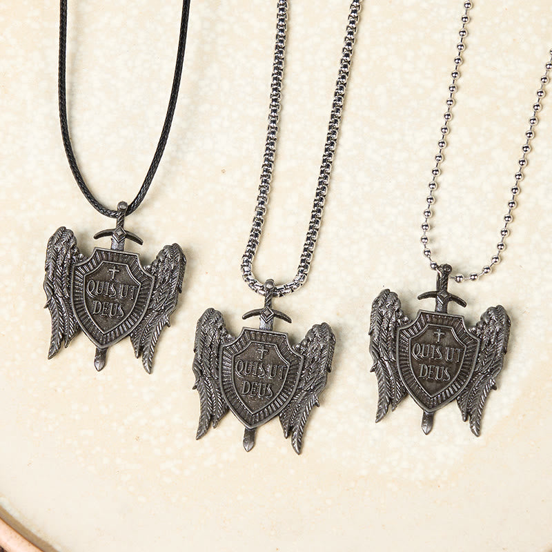 Inscribed Message: Adorned with the Latin phrase "Quis ut Deus", meaning "Who is like God?", this necklace is a bold declaration of devotion and reverence, reminding you of God's unparalleled presence and power.