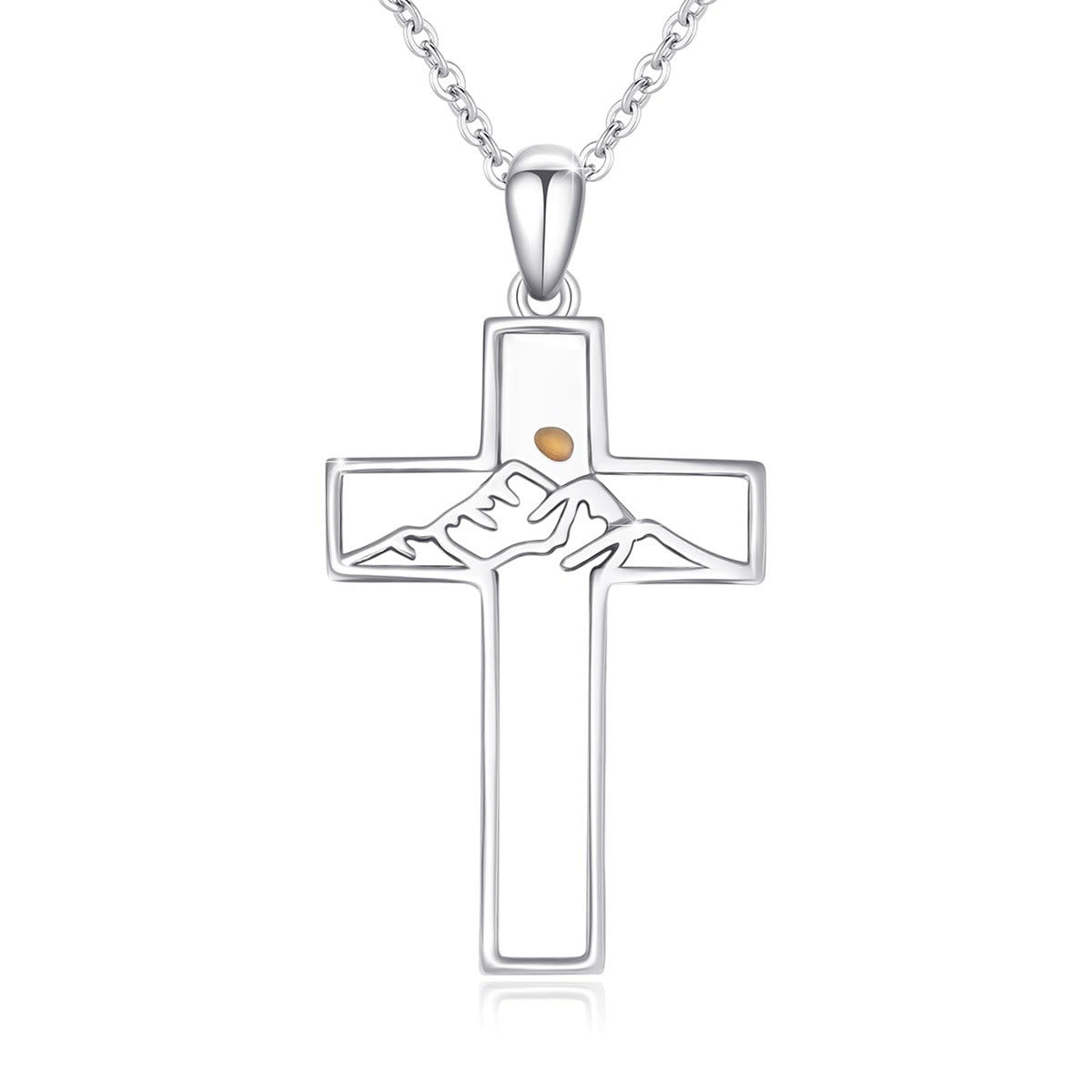 • Mustard Seed Mountain Cross Necklace: Faith's Endurance & Nature's Wonder