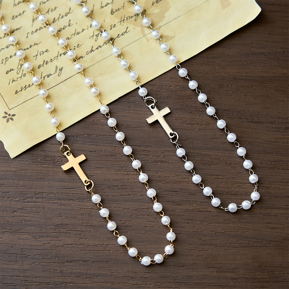 Expertly crafted with lustrous beads and polished metal, it boasts a refined cross detail. Built to resist wear, it maintains a meaningful, enduring look for daily wear. -