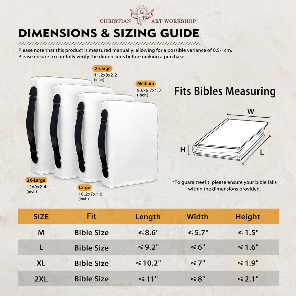 Each of these bible covers is stitched by hand, one careful thread at a time—just as Christ calls us to work with patience, not haste, and to honor even the small details. We’ll take about 1 week to craft yours, making sure it holds the care worthy of you, then we’ll send it off once it’s ready. Thank you for trusting this little waiting process; it’s how we make something that feels truly special for you.