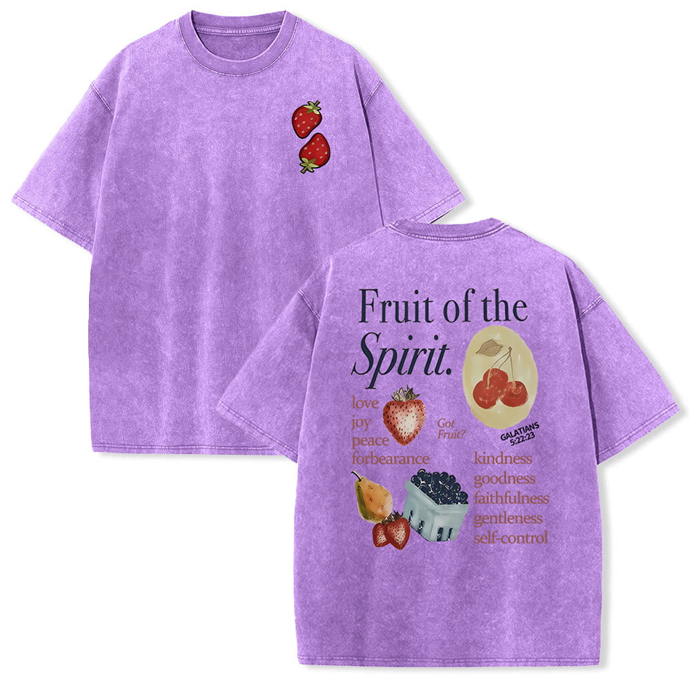 Front & back of this T-shirt share a faith - filled message. On the front, a cute strawberry graphic hints at the spiritual theme. The back expands it with “Fruit of the Spirit” and virtues like love, joy, paired with fruits, tying to Galatians 5:22 - 23. Wearing it is not just a style pick, but a reminder to live out the Spirit’s fruits—letting this two - sided design keep the essence of Christian values close in daily life.