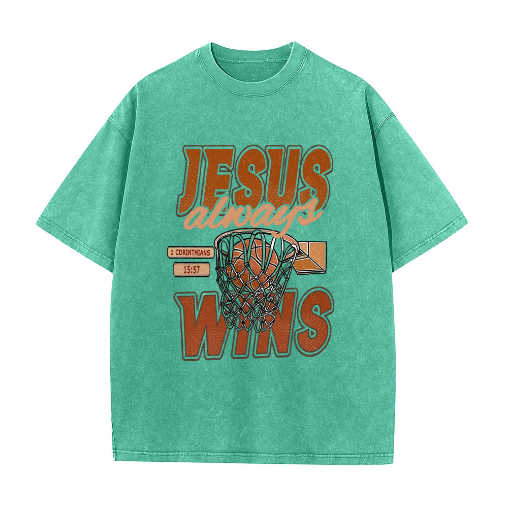 Christianartworkshop Jesus Always Wins Basketball Graphic Unisex Washed T-shirt