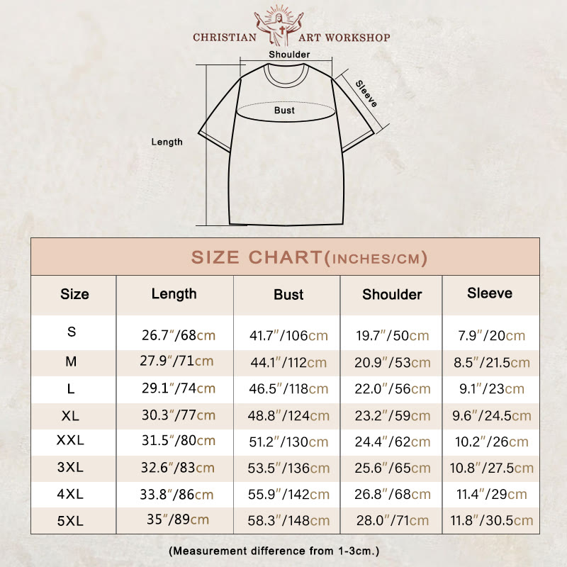 On the front and back of this T-shirt, an inspiring graphic combination is presented. The front showcases the powerful "Faith Over Fear" slogan, while the back features a striking design of a thorn crown encircling a cross. Wearing it is not only a display of a bold faith statement but also a reminder to ourselves of Jesus' sacrifice and the courage to overcome fear through faith, keeping this empowering message in mind in our daily lives.