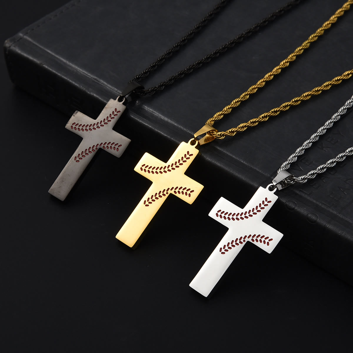 Featuring cross pendants with baseball stitch details and uplifting words, these necklaces blend sporty style and spiritual encouragement — inviting reflection on faith and personal strength in daily life.