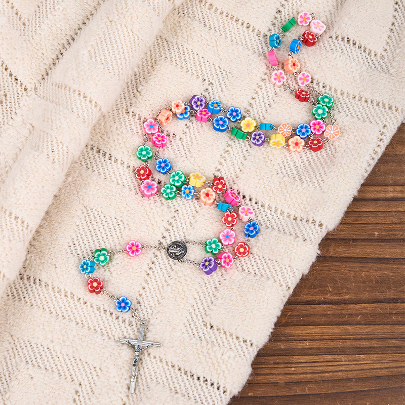 Vivid Design: Each bead in this rosary is shaped like a delicate flower in a variety of bright and cheerful colors. These beads not only add a touch of charm but also represent the beauty and diversity of God's creation.