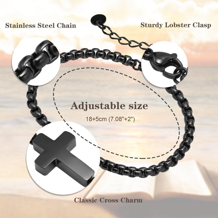 Introducing our thoughtfully designed Minimalist Cross Chain Bracelet, available in classic black and timeless silver, crafted to inspire hope, strength, and a constant reminder of divine love in your everyday life. -