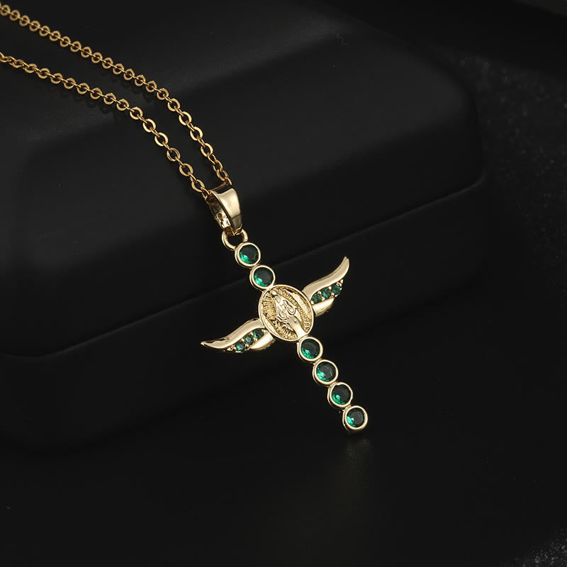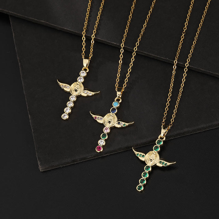 Classic Style Angel Wings Miraculous Medal Pendant Necklace