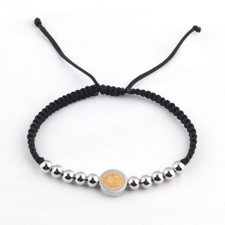 Minimalist Style St. Benedict Medal Stainless Steel Beads Adjustable Nylon Cord Bracelet