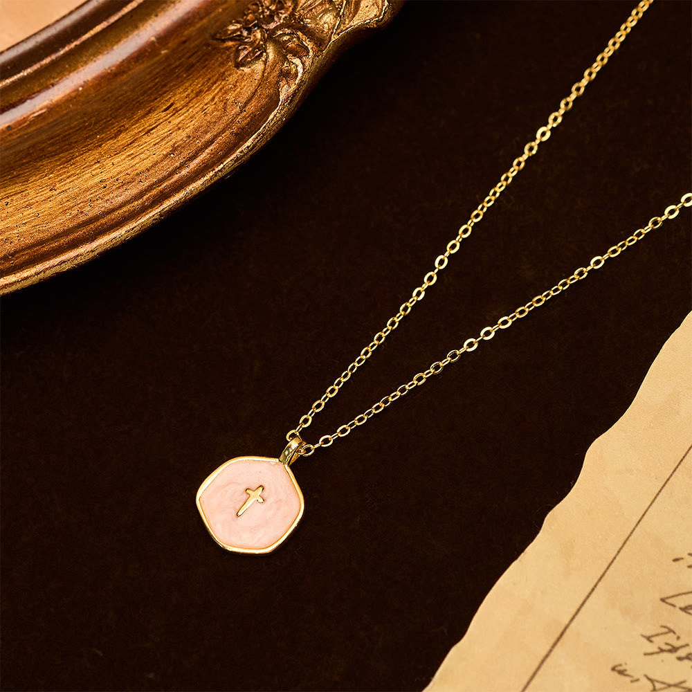 Introducing our Geometric Cross Pendant Necklace — a delicate piece blending soft pastel hues, artful irregular geometry, and a subtle cross symbol for your everyday spiritual and style journey.