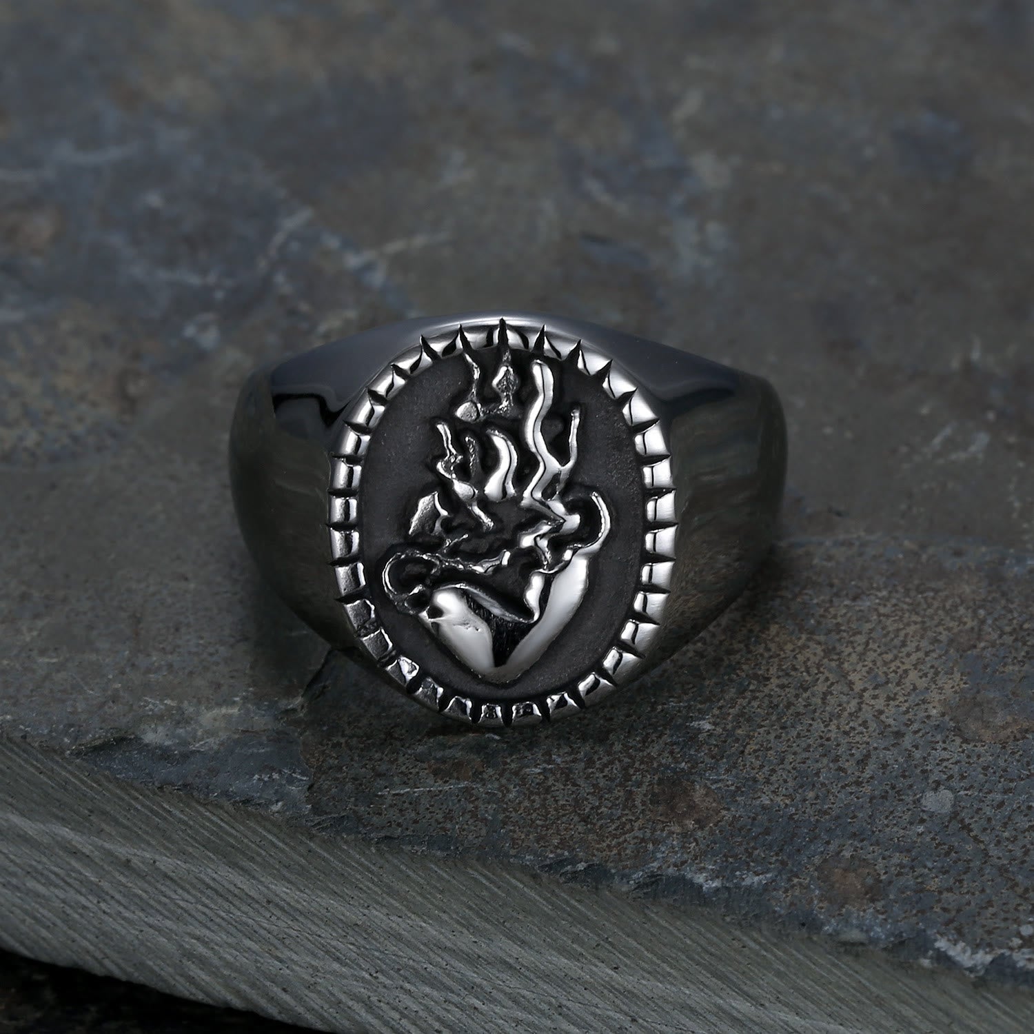 Carry your faith with you every day with this intricately designed stainless steel ring, featuring bold cross engravings and elegant scrolling patterns. Perfectly combining style and devotion, this ring is more than just an accessory—it’s a declaration of your beliefs.