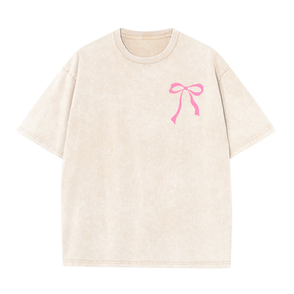 Wrap yourself in soft, vintage-inspired comfort with our oversized tee—where delicate bows dance around the heartfelt phrase "Living Proof of a Loving God".A blend of gentle charm and quiet conviction, it’s more than a shirt: it’s a warm, wearable statement.