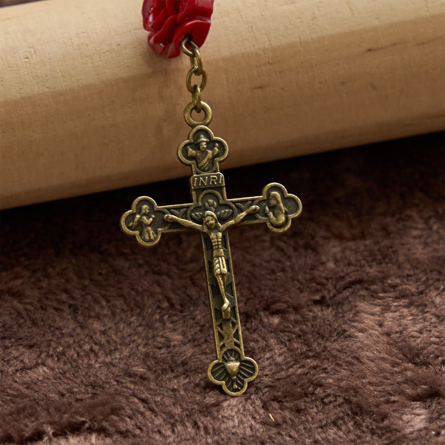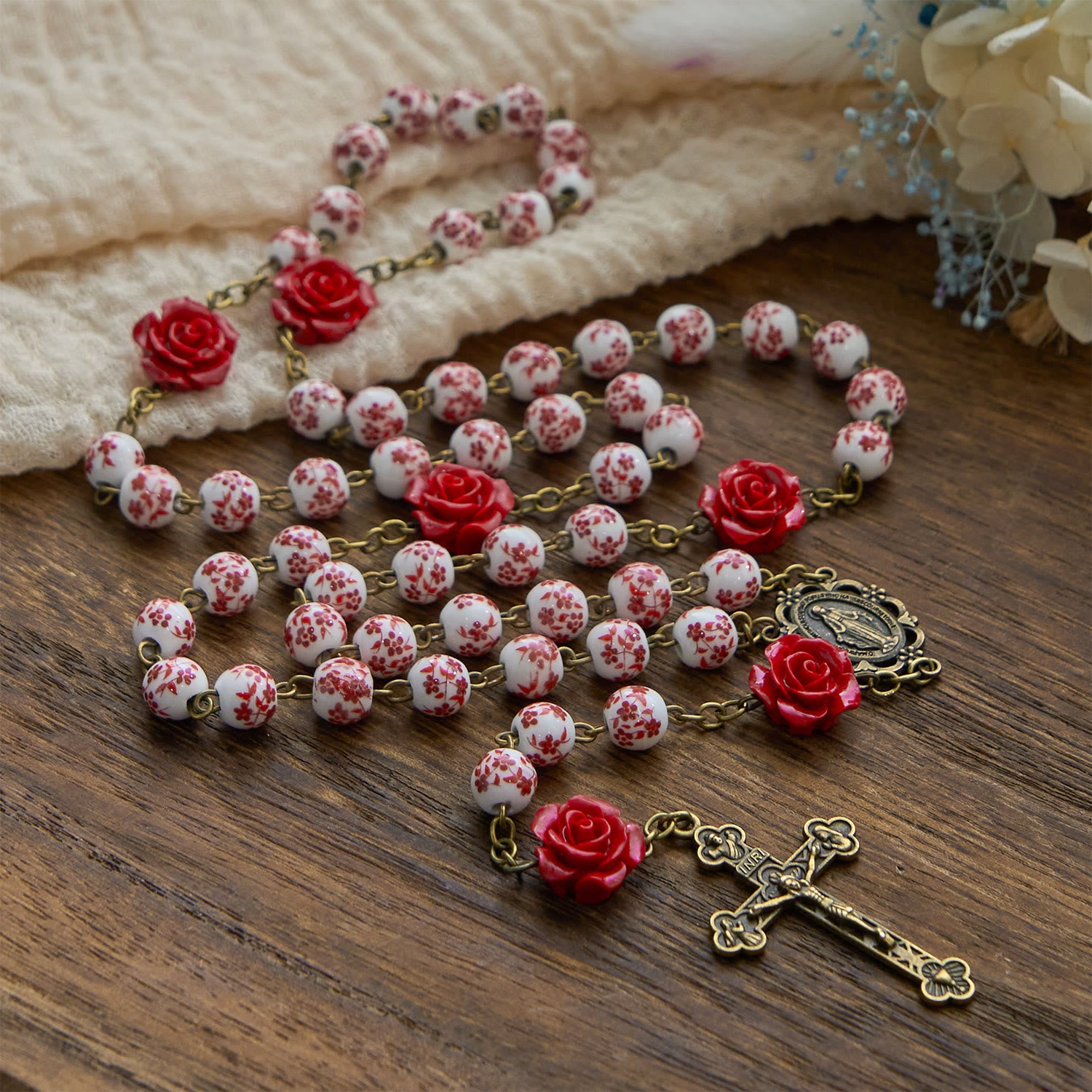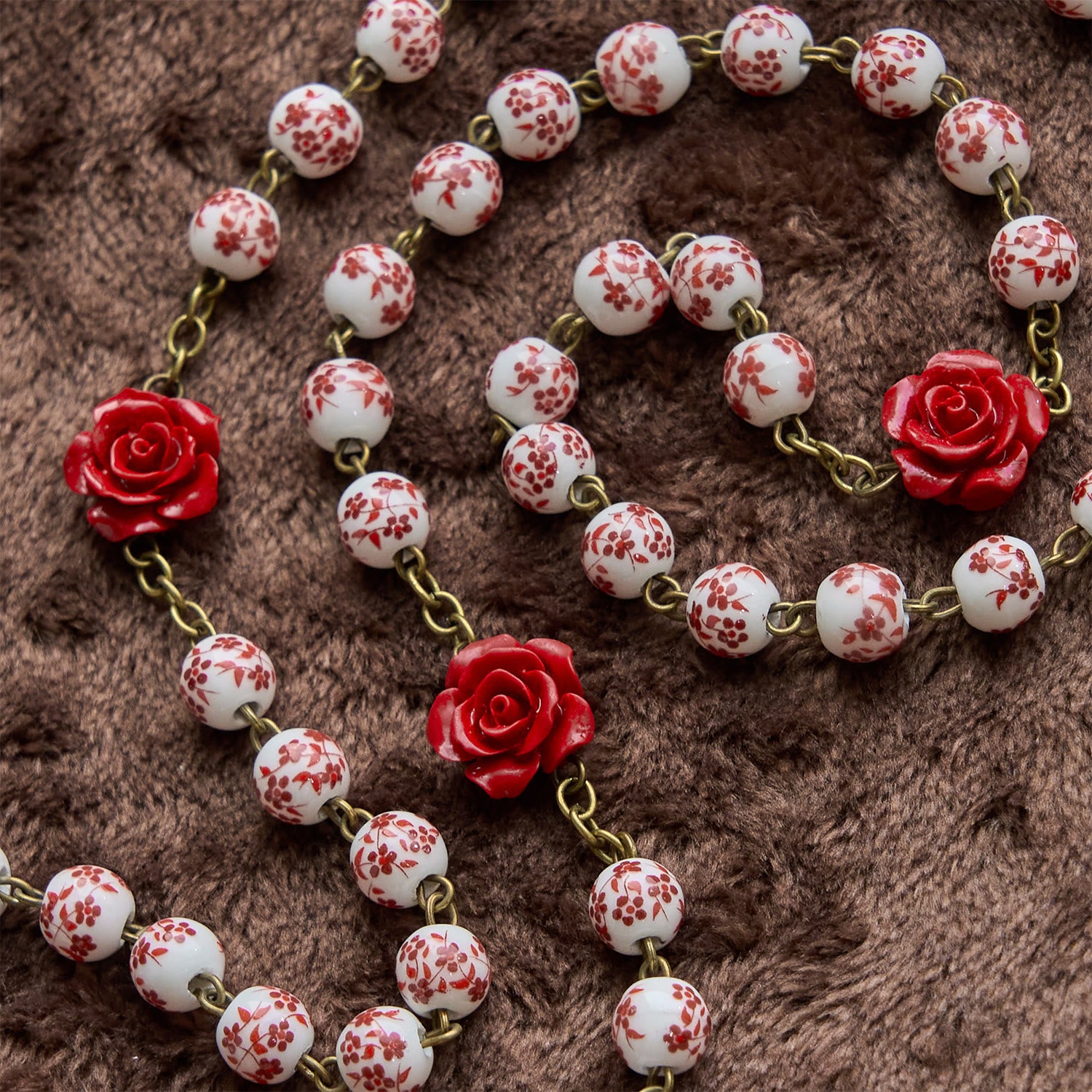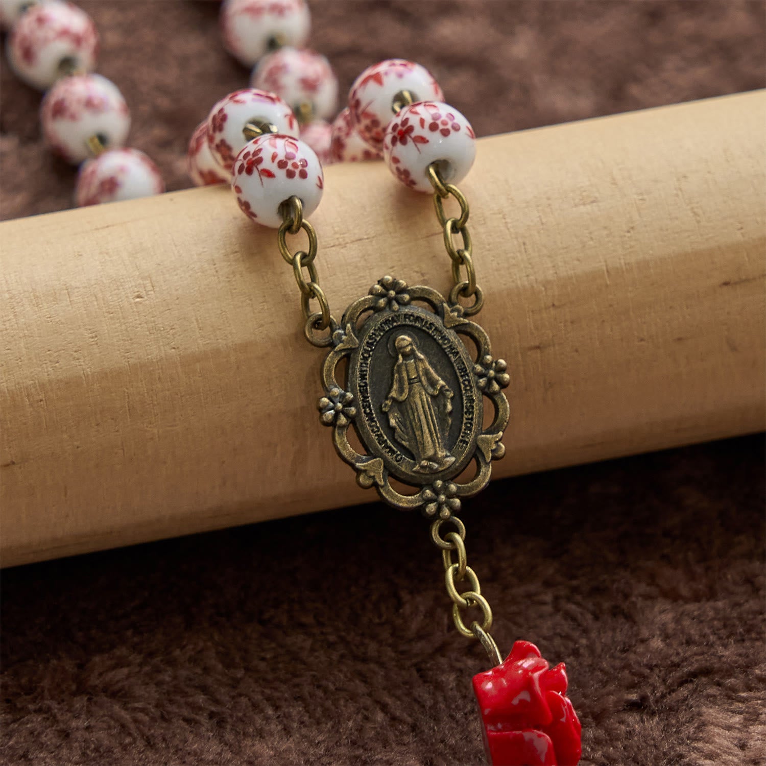 This rosary boasts ceramic beads, each one a canvas of artistry. Their smooth texture offers a comforting tactile experience as you engage in prayer. The ceramic medium, with its innate elegance, adds a touch of timeless beauty to your act of worship.