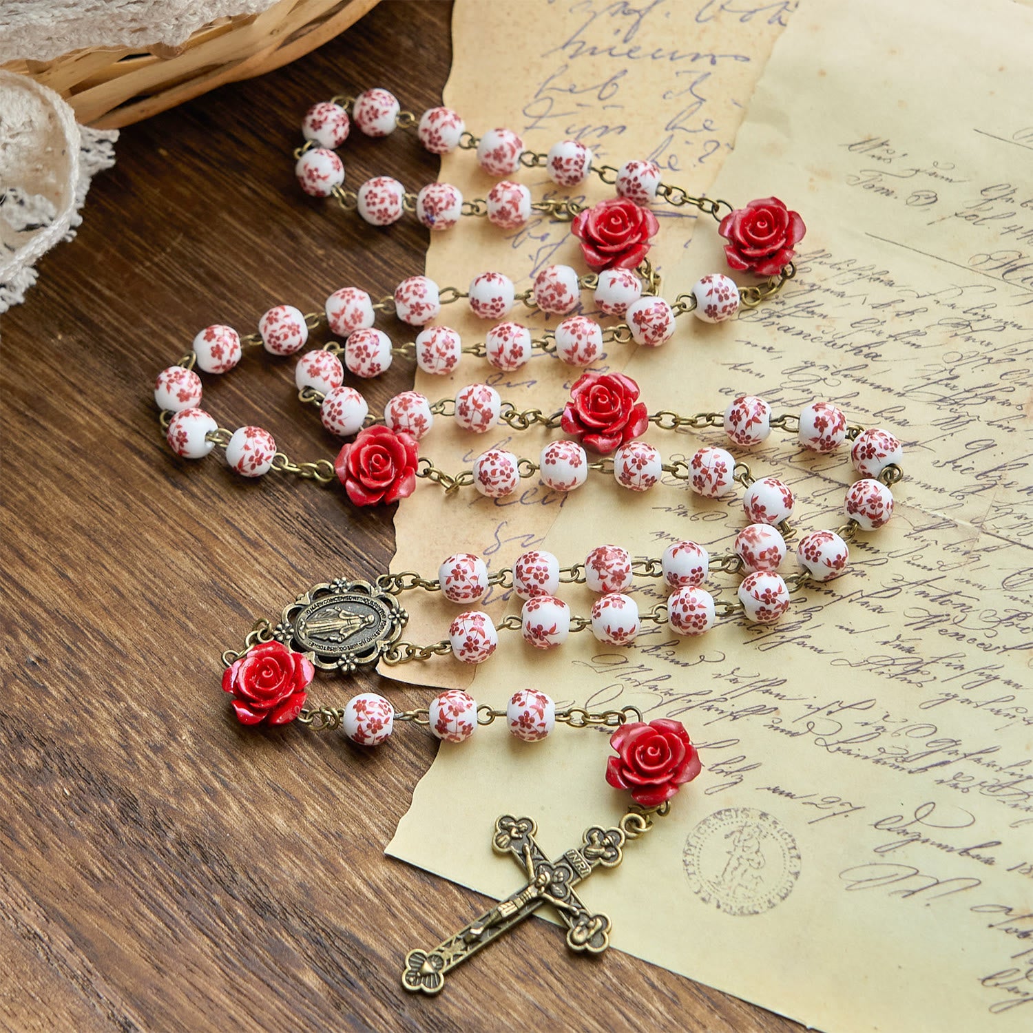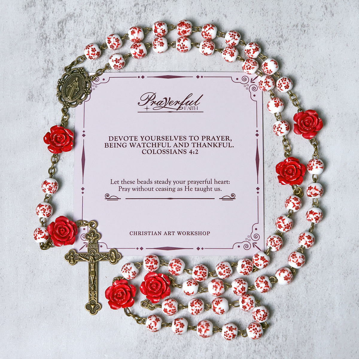 Christianartworkshop PRAYERFUL FAITH:Handmade Rose Cinnabar Beads Rosary with Gift Card