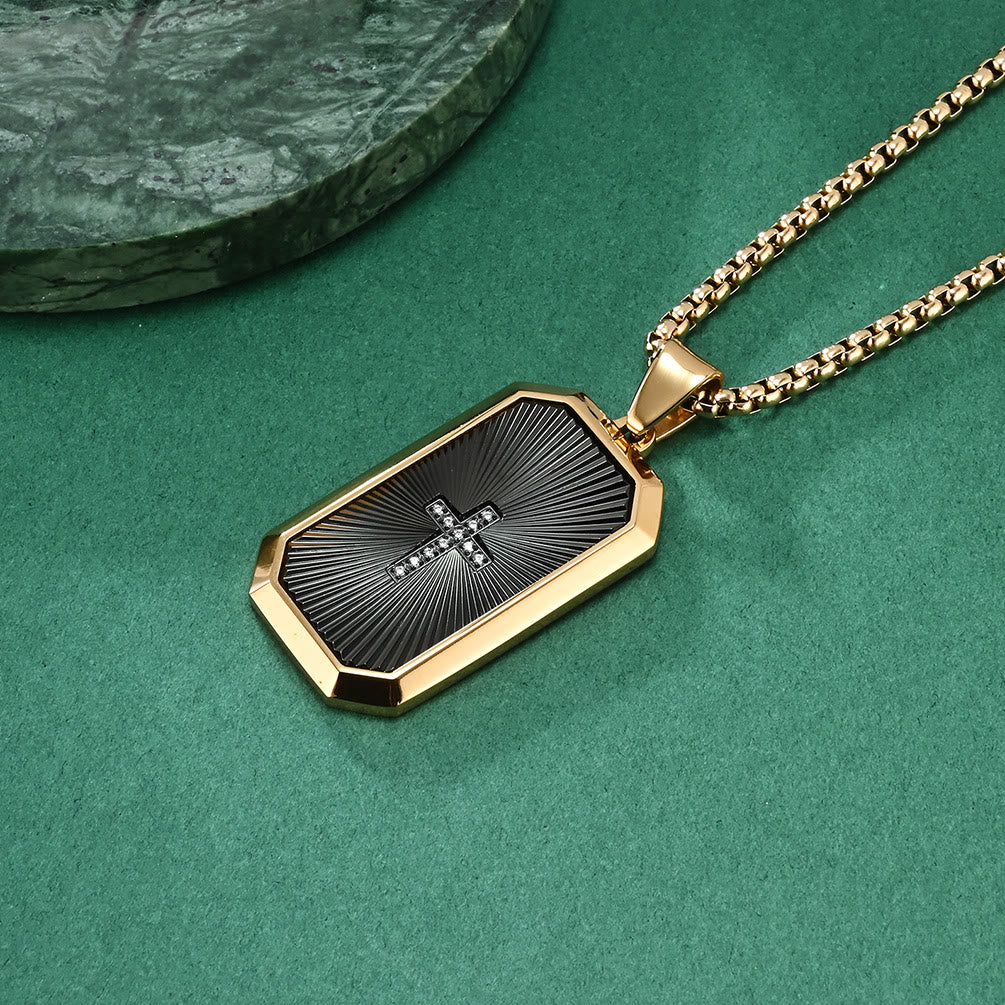 A metallic pendant (in dual - tone pairings like gold & black, silver & black), featuring an embossed cross with radiant texturing, stands as a stylish testament to faith.