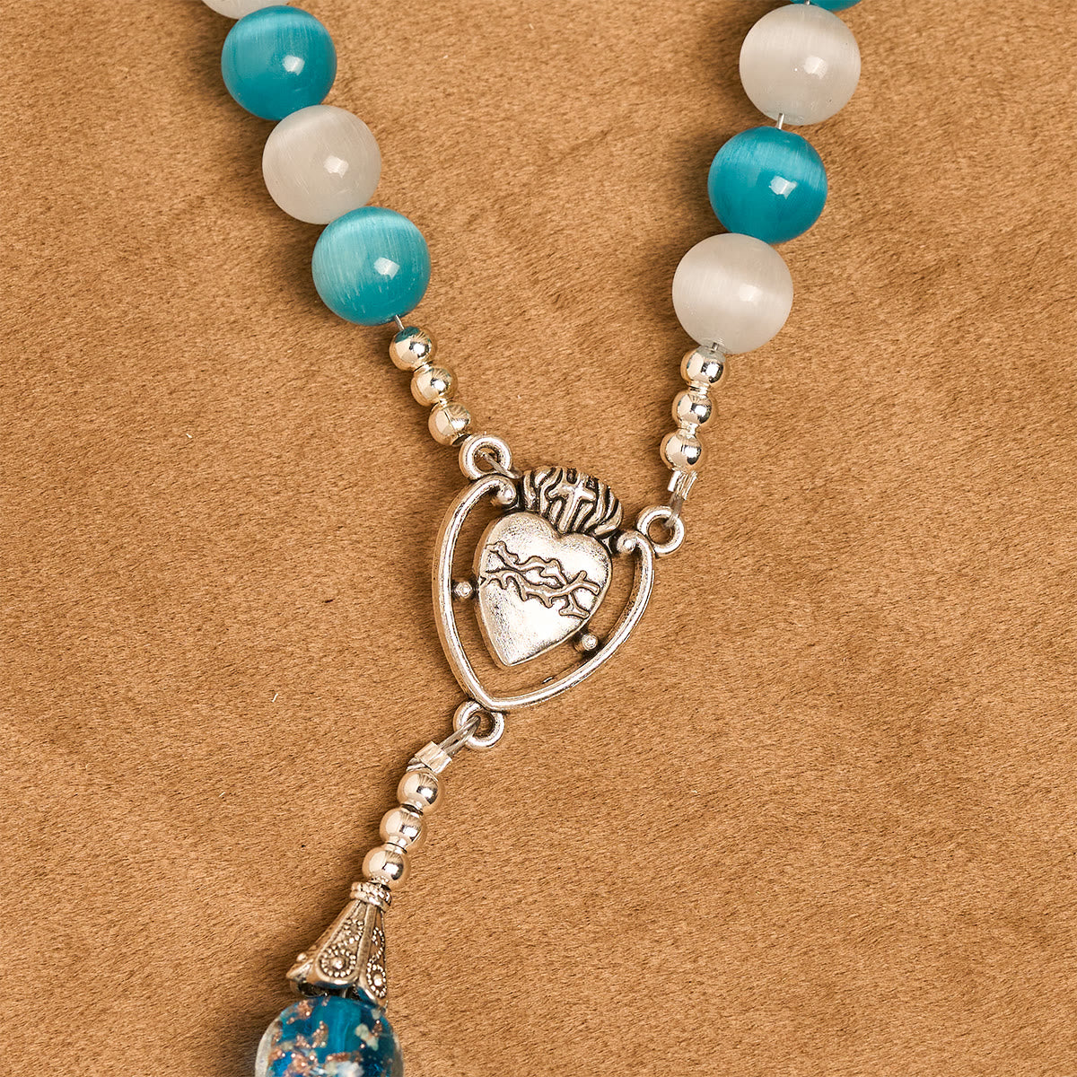 FREE Today: Glittering Cat's Eye Stone & Blue Star Glass Rosary with Sacred Heart