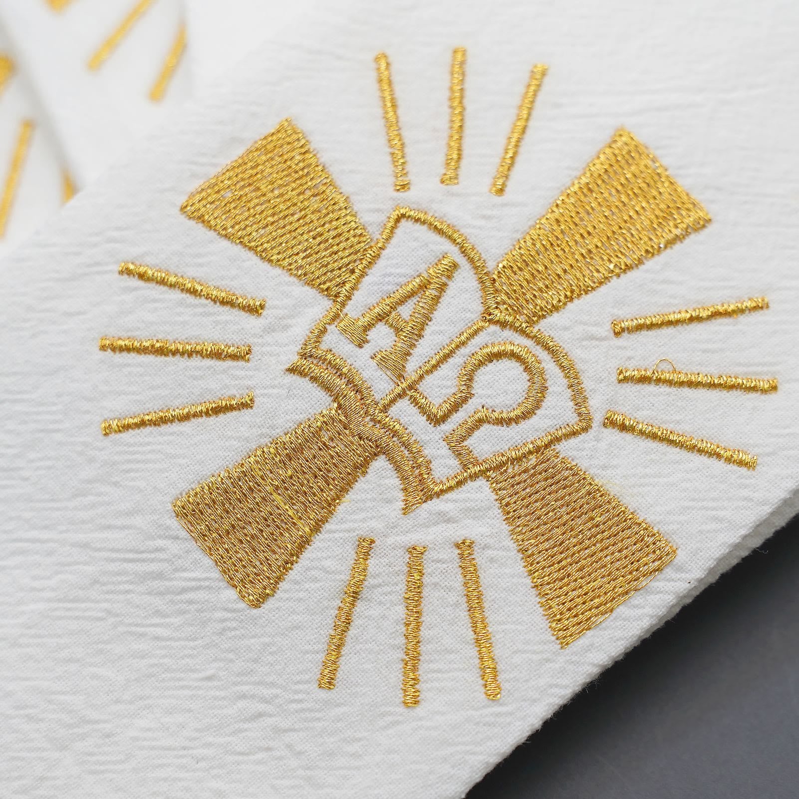 Made from soft, absorbent fabric, these handkerchiefs are designed for both practicality and beauty. The intricate embroidery adds a touch of elegance, making them suitable for church, prayer, or everyday moments of reflection. -