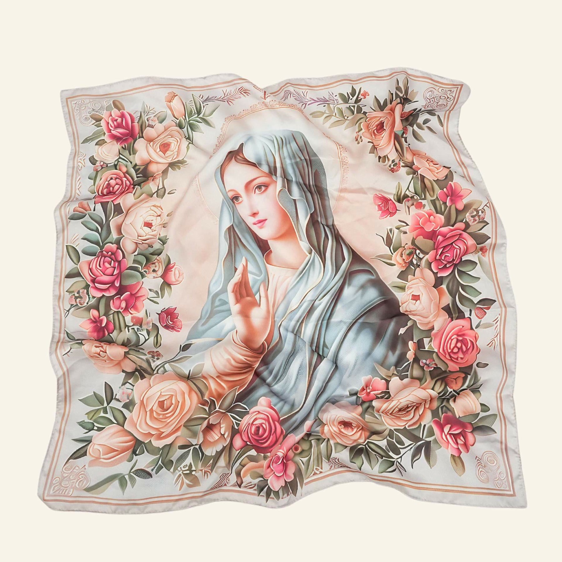 Christianartworkshop Serene Madonna Satin Scarf: A Blossom of Devotion