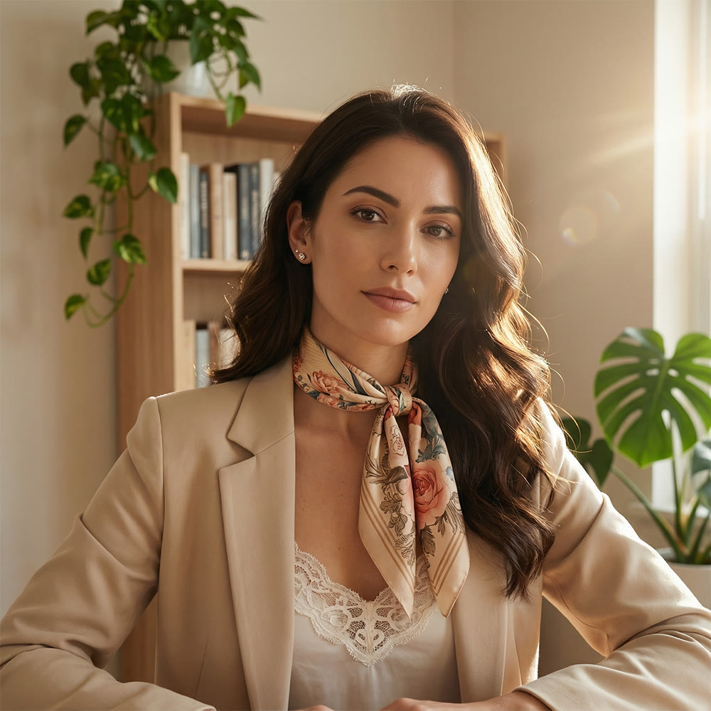 Made from premium satin chiffon, the scarf offers a luxurious, lightweight drape that feels soft against the skin. Its fluid movement and delicate sheen elevate any outfit, making it suitable for both special occasions and everyday elegance.