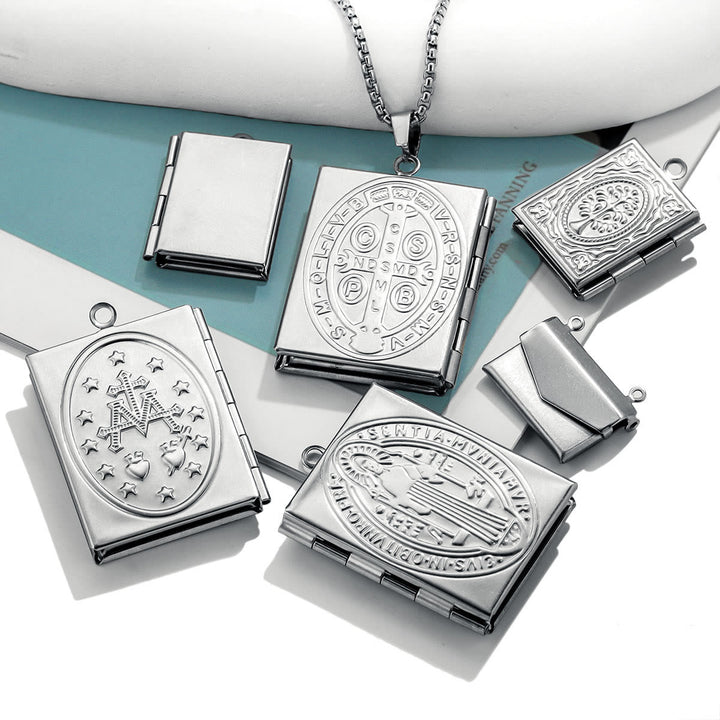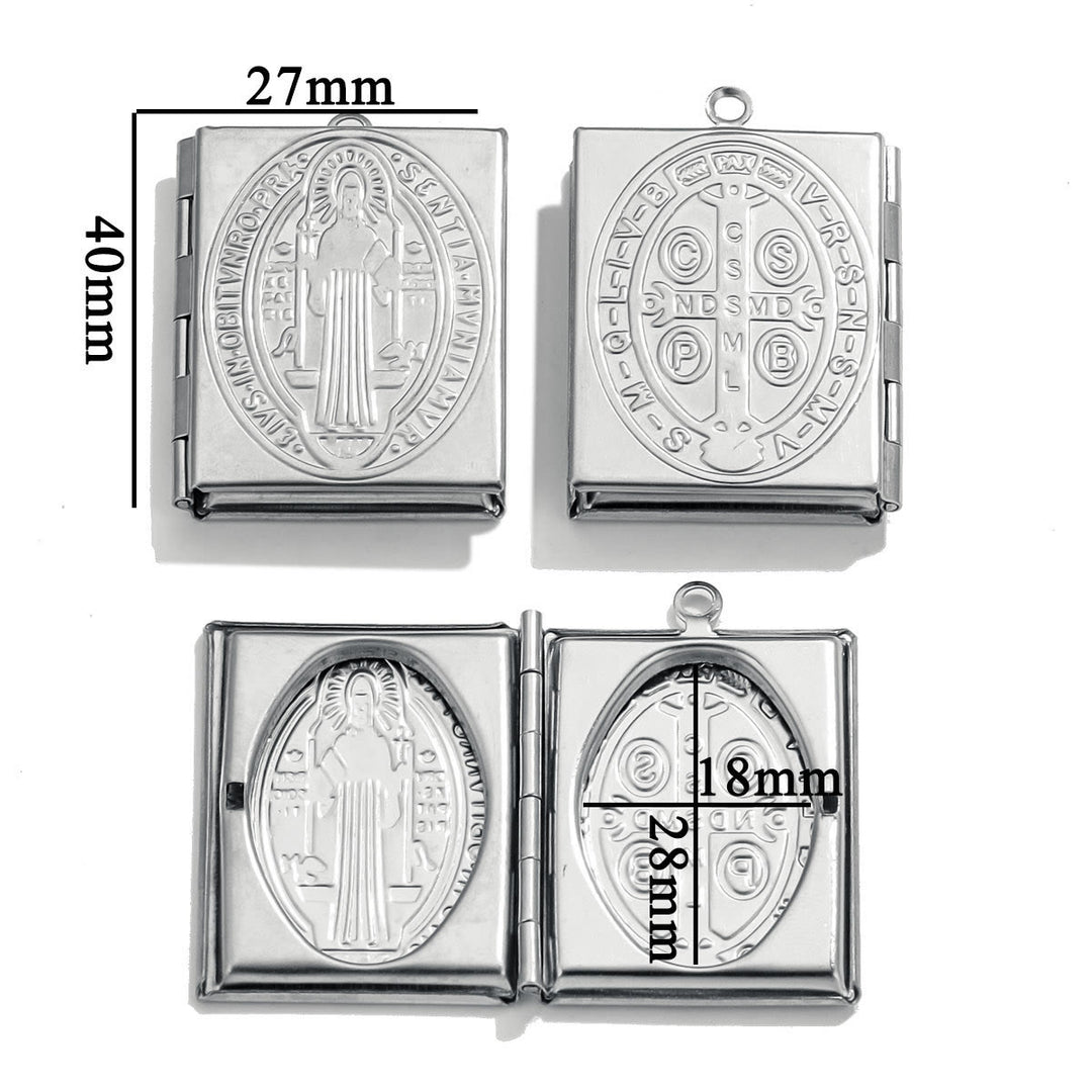 Sacred Designs: Each photo box pendant features meticulously crafted religious symbols, such as the St. Benedict Medal, Miraculous Medal, and other Christian motifs. These detailed designs not only highlight your faith but also offer a comforting spiritual presence.