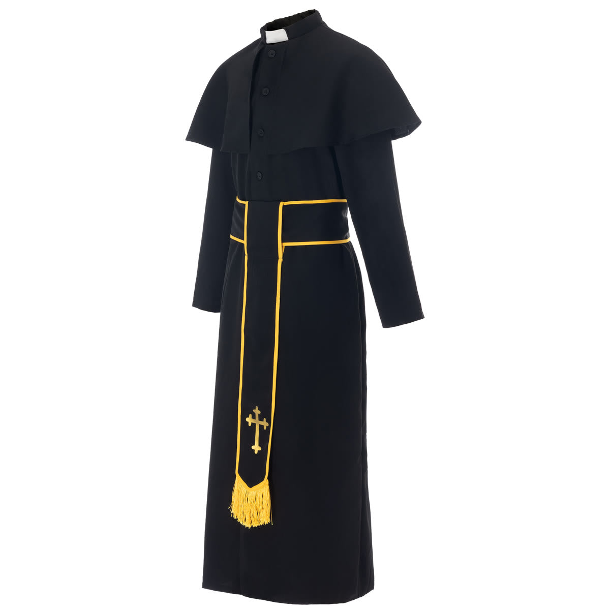 Christianartworkshop Medieval Style Black Cassock Clergy Robe with Cross Tassel Belt and Shawl Collar