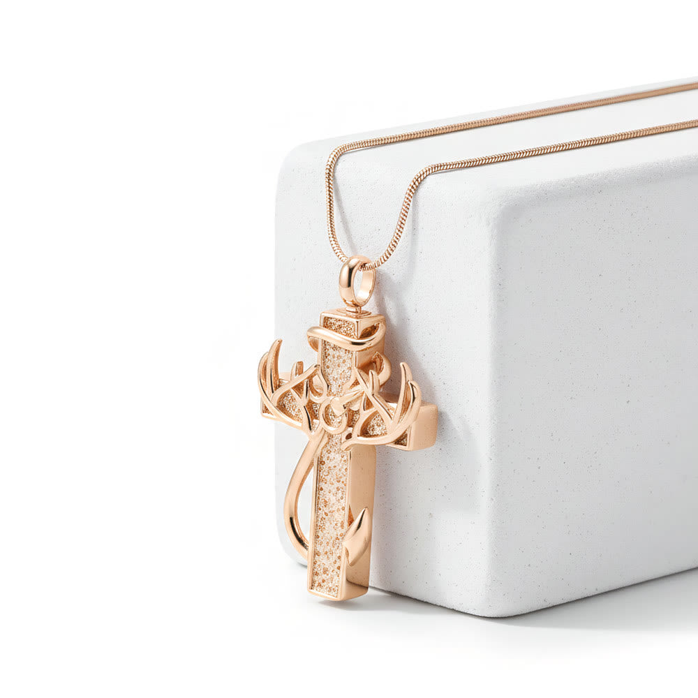 Featuring a cross integrated with antler and fishing hook motifs, this necklace radiates hunting-fishing faith and spiritual devotion — inviting reflection on outdoor pursuits and divine connection in everyday life.