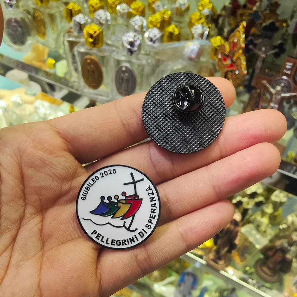 Inspirational Inscription: Embossed with “GIUBILEO 2025” and "PELLEGRINI DI SPERANZA" (Pilgrims of Hope), these badges radiate an inspiring message of hope and spiritual pilgrimage towards Christ’s millennium.