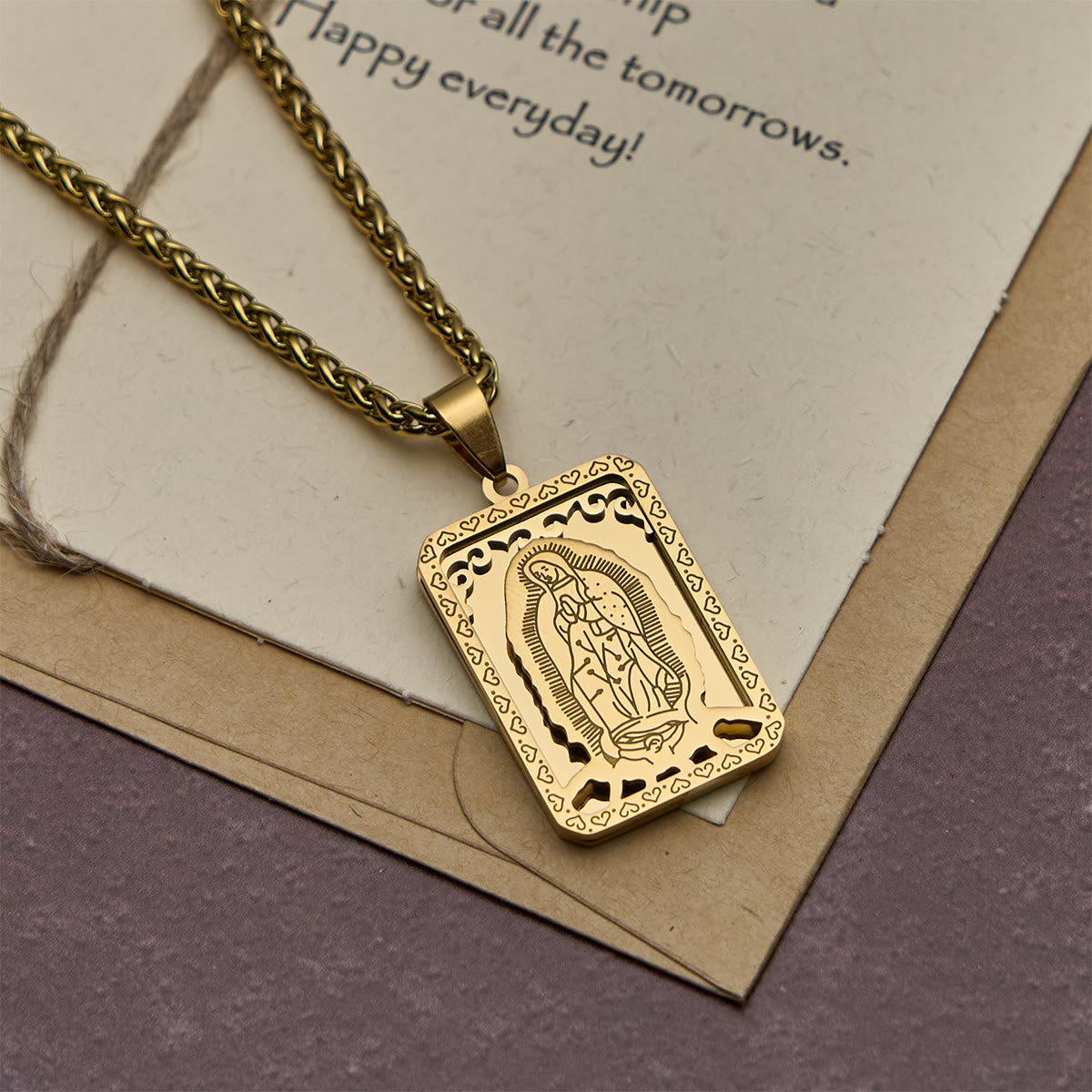 Available in gold and silver tones, each rectangular pendant boasts detailed engraving of the Madonna and heart - edged detailing. Merging artistry with reverence, it’s perfect for daily wear or special faith - centered moments. -