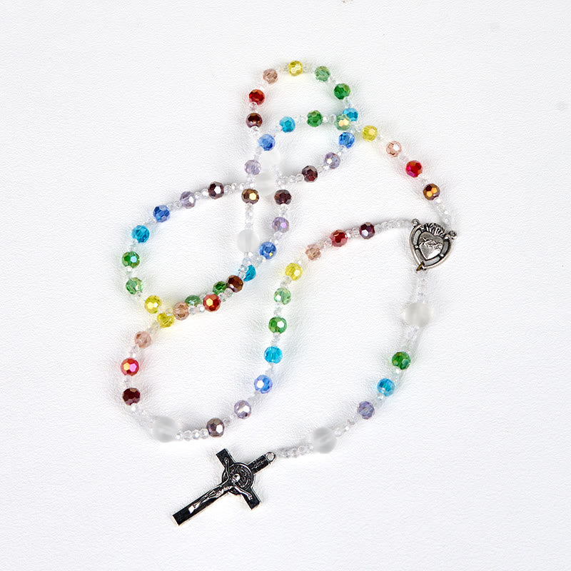 Our rosary features a stunning array of multicolored glass beads, symbolizing the various aspects of your faith journey. The bright and cheerful hues of the beads add a unique and uplifting dimension to your prayers. The smooth texture of the beads feels comforting in your hands, enriching your prayer experience with their captivating beauty. -