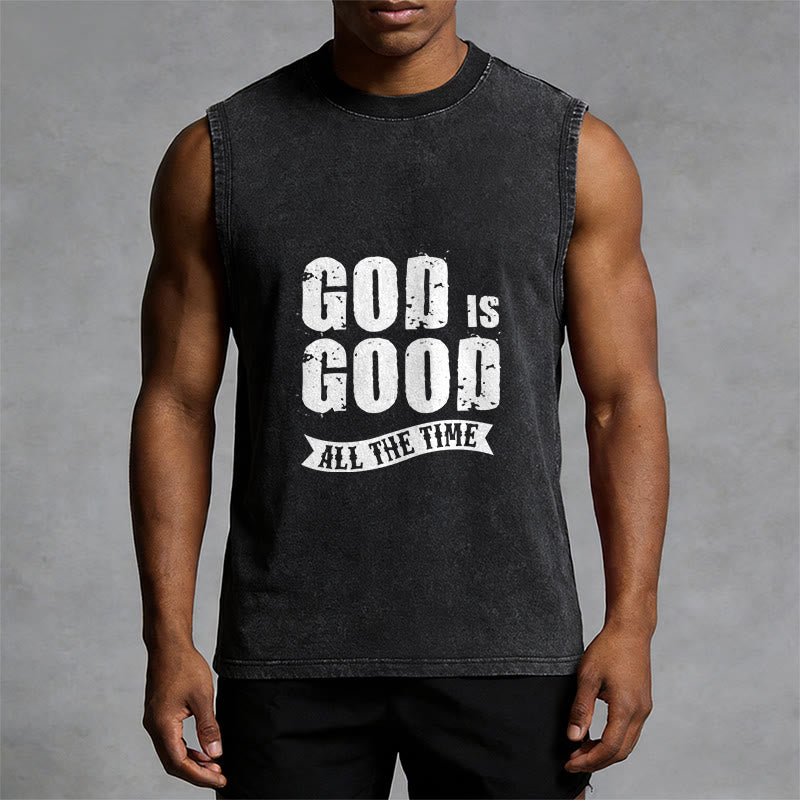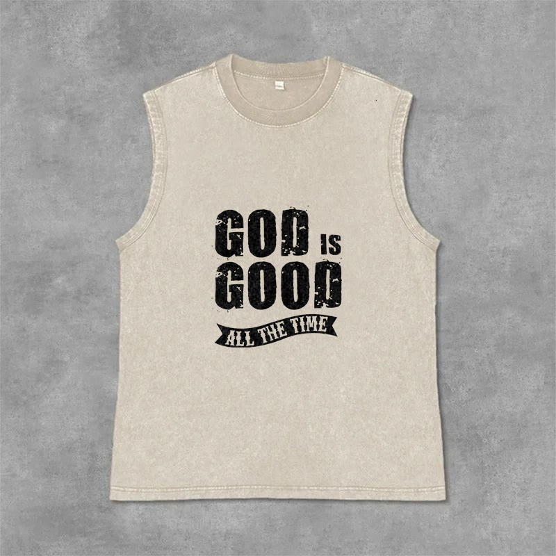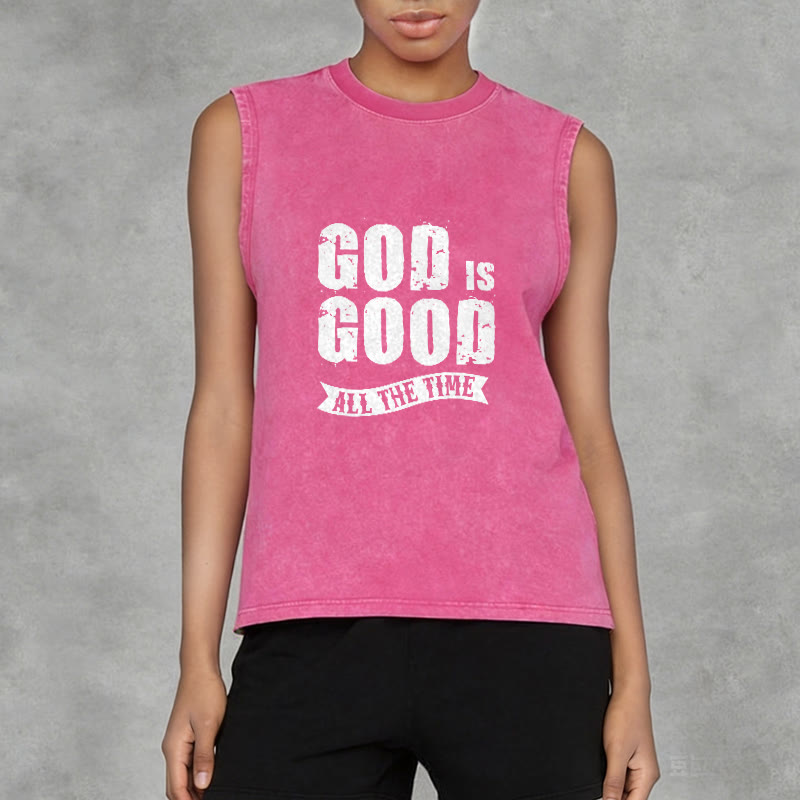 Introducing the "God Is Good All The Time" Unisex Washed Tank Top, a bold and reassuring piece that speaks volumes about your faith. The design features distressed, vintage-style lettering for GOD IS GOOD, paired with a classic banner reading ALL THE TIME — a timeless proclamation of God’s unwavering goodness and faithfulness, rooted in the biblical truth that His love and grace never fail, regardless of life’s circumstances. This tank top serves as a wearable reminder to praise Him in every season.