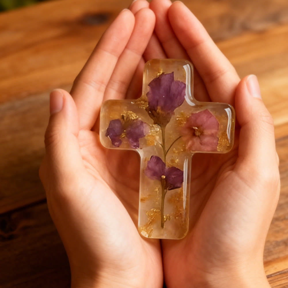 Ideal for quiet reflection or as a tender faith gesture, the acrylic craft blends delicate artistry with spiritual warmth — a small, constant link to grace. -