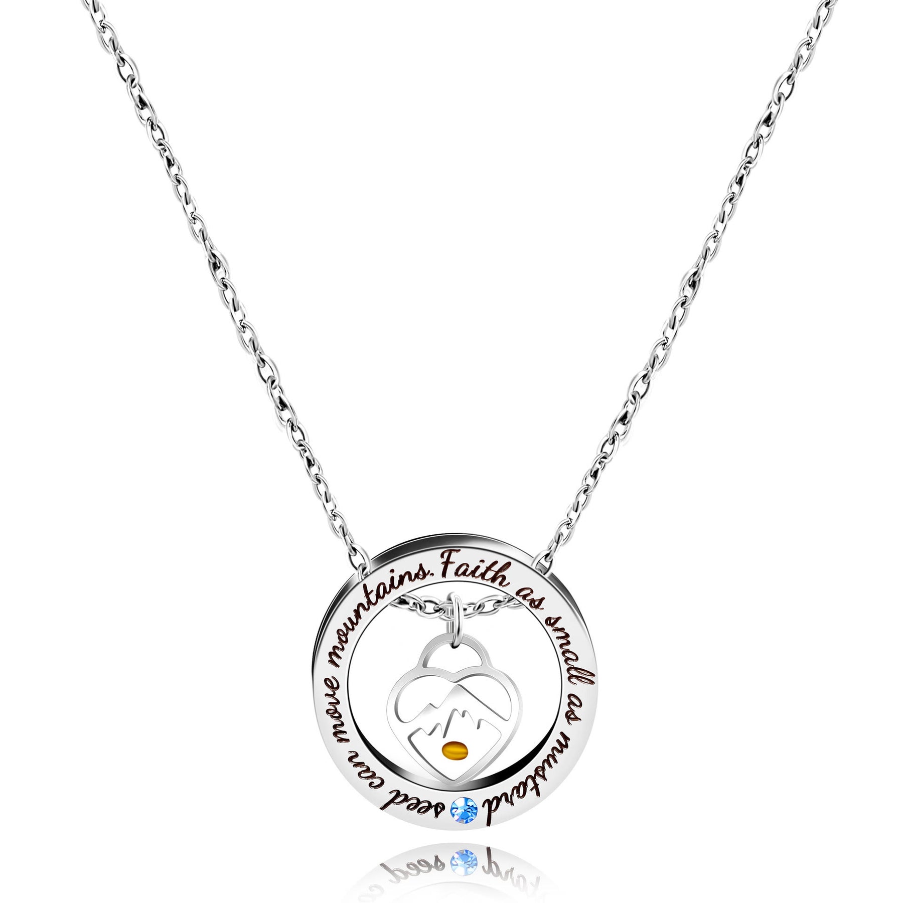 Forged in polished metal, each circular pendant bears the classic mustard seed faith phrase, paired with a seed-embedded teardrop/heart charm. Meticulously made, the series honors your faith journey, blending the mustard seed’s symbolic power and diverse, elegant styles.
