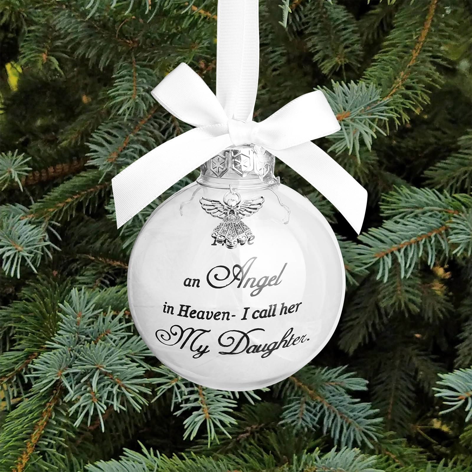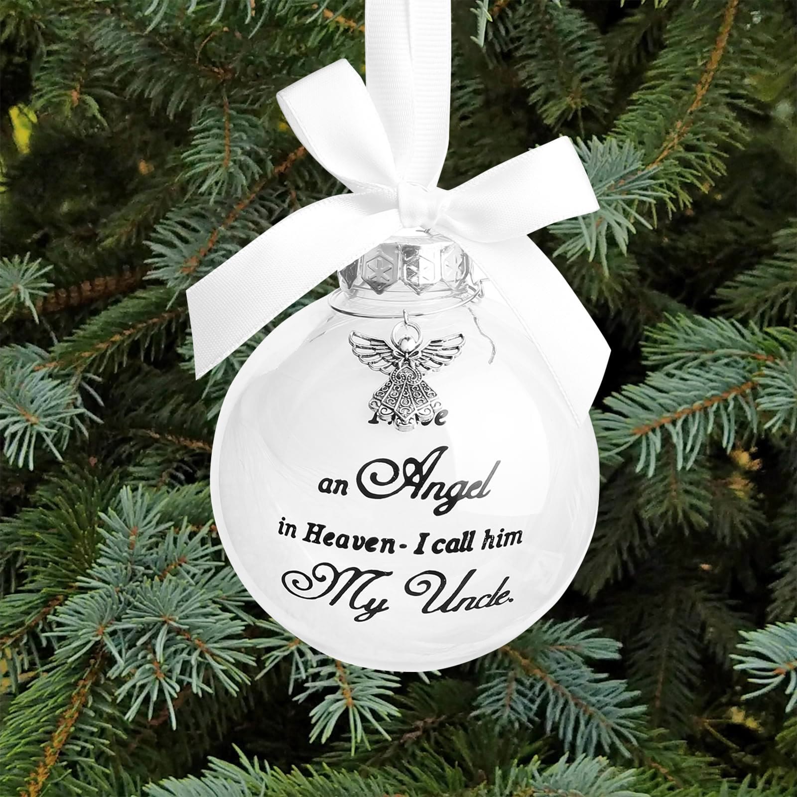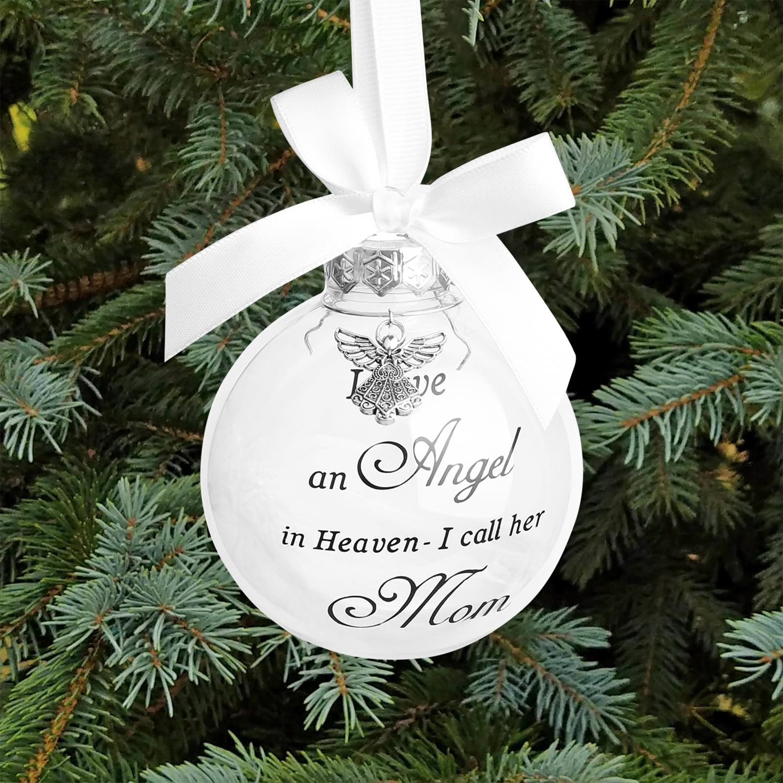 This ornament merges spiritual symbolism with heartfelt family ties. The angel charm and personalized “Heavenly Angel” message honor loved ones in eternal peace, blending Christmas warmth and faith-driven remembrance. -